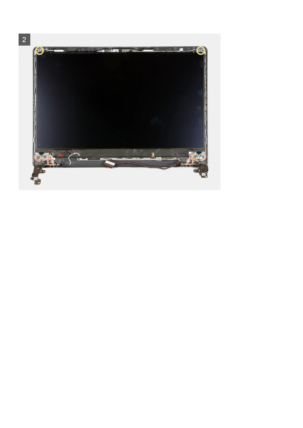 7. Replace the two screws (M2x2.5) that secure the display panel to the display assembly.