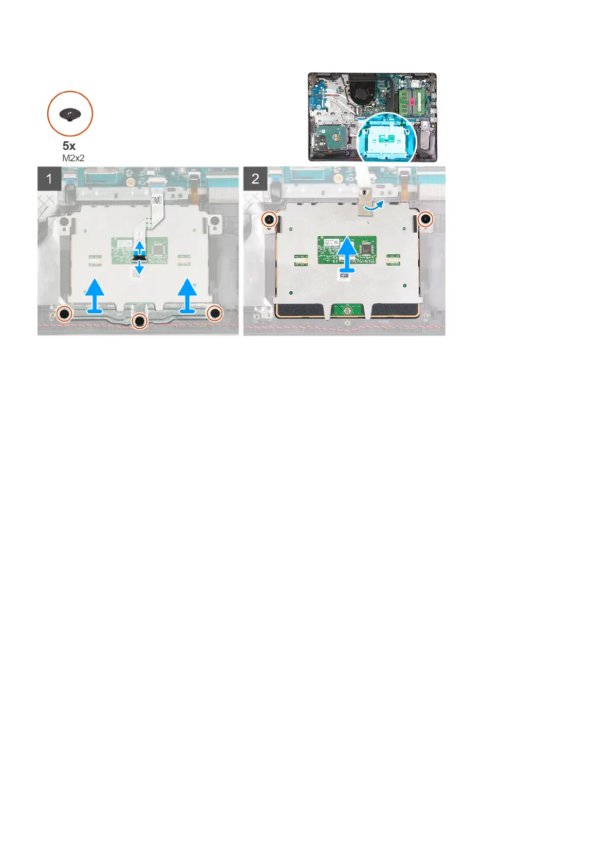 4. Remove the two screws (M2x2) that secure the touchpad to the palm-rest and keyboard assembly.