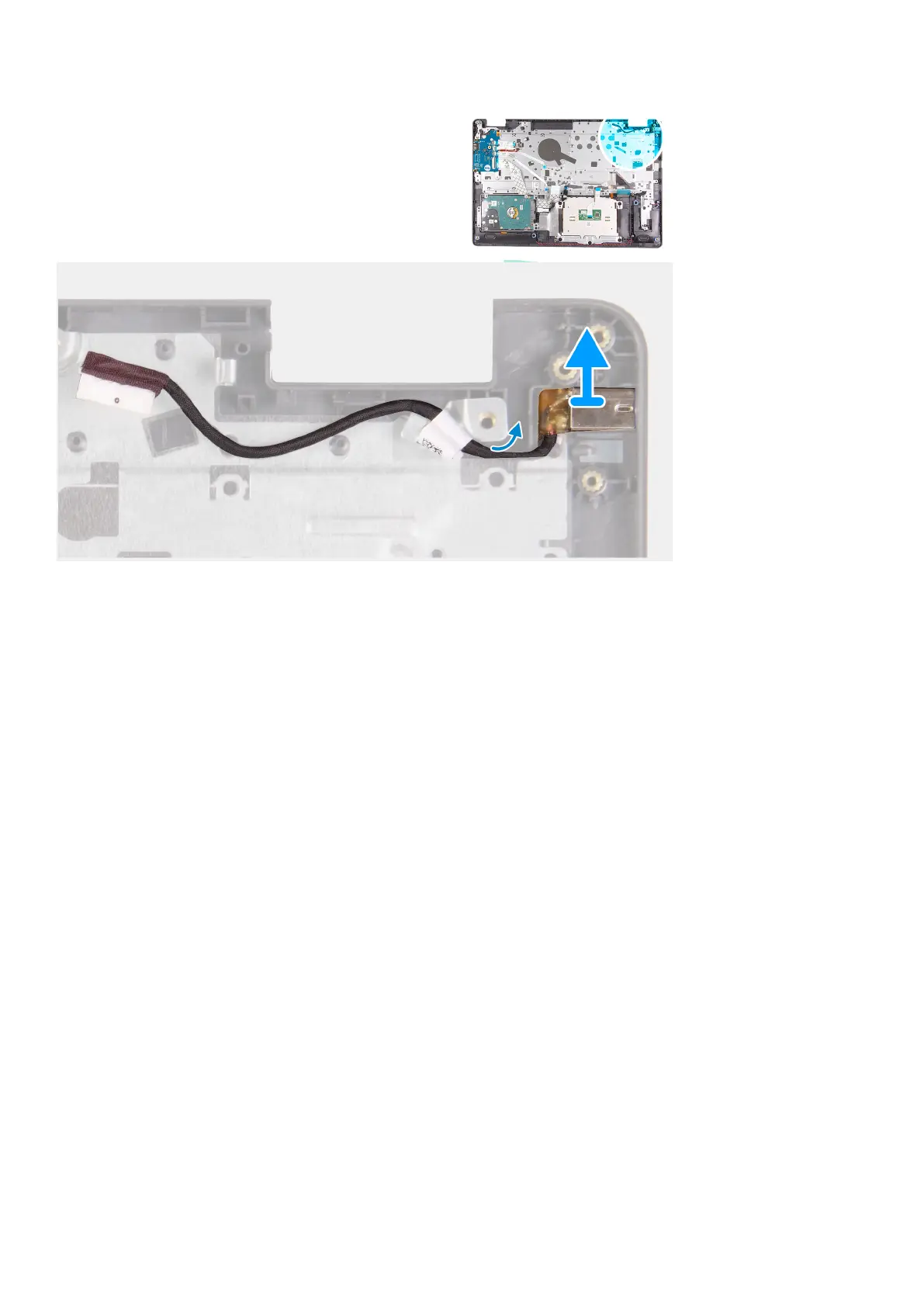 Lift the power-adapter port from its slot on the palm-rest and keyboard assembly.