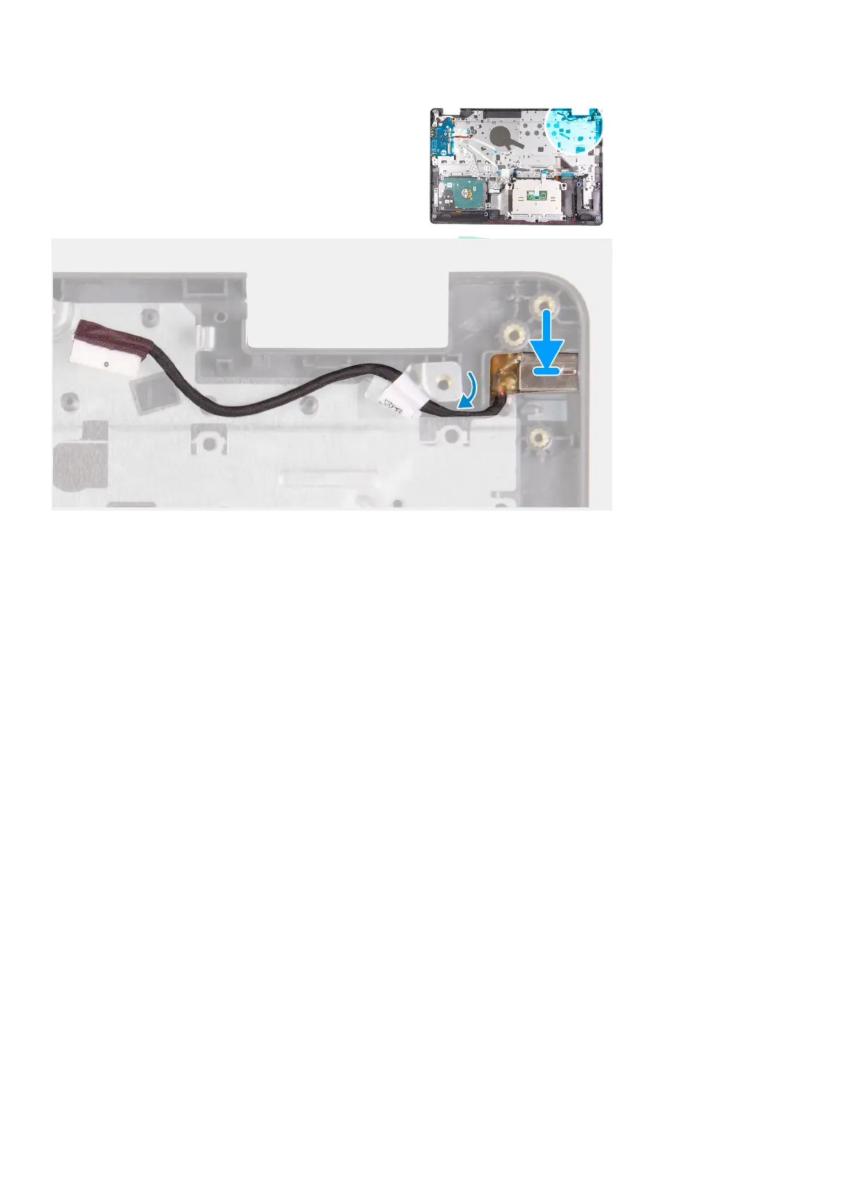 Place the power-adapter port into its slot on the palm-rest and keyboard assembly.