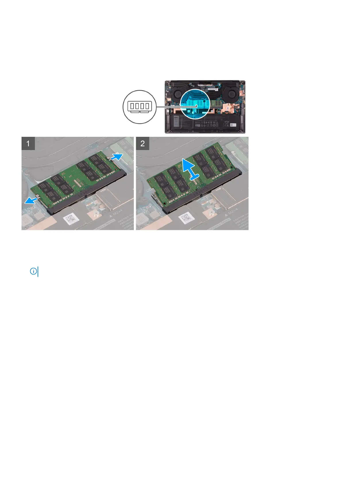 The following image indicates the location of the memory modules and provides a visual representation of the removal