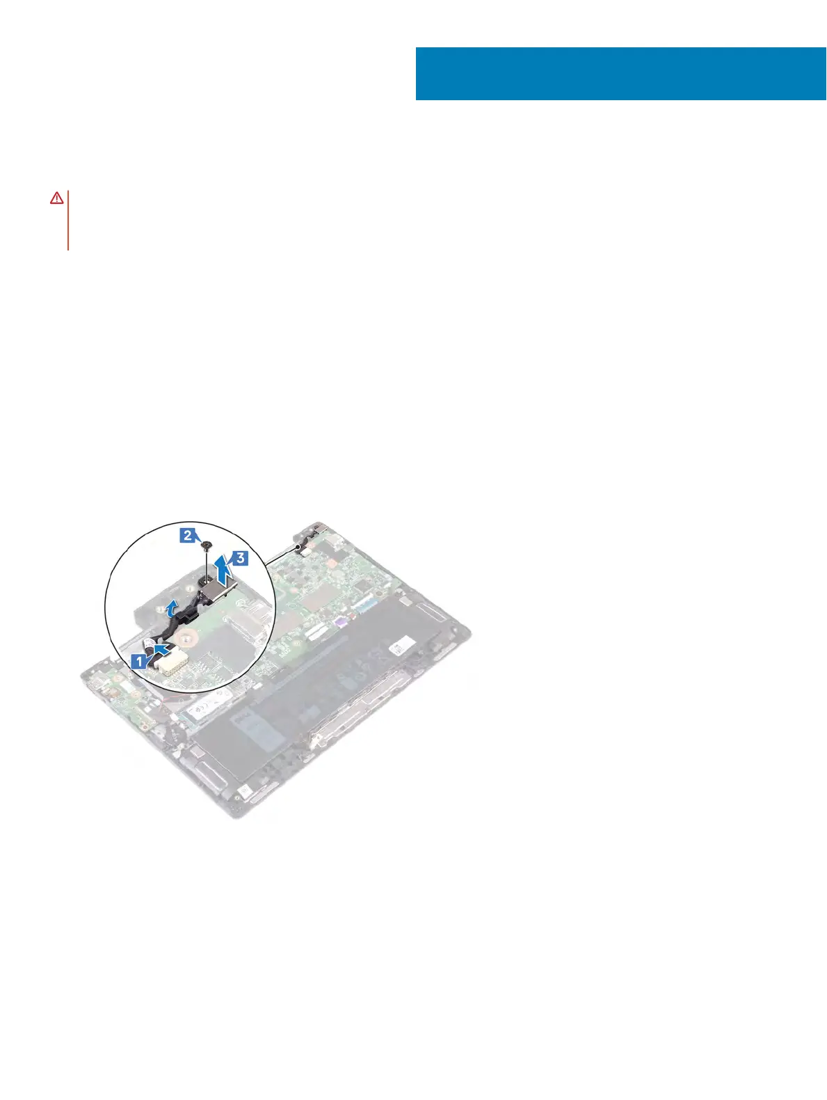 3 Lift the power-adapter port, along with its cable, o the palm-rest assembly.