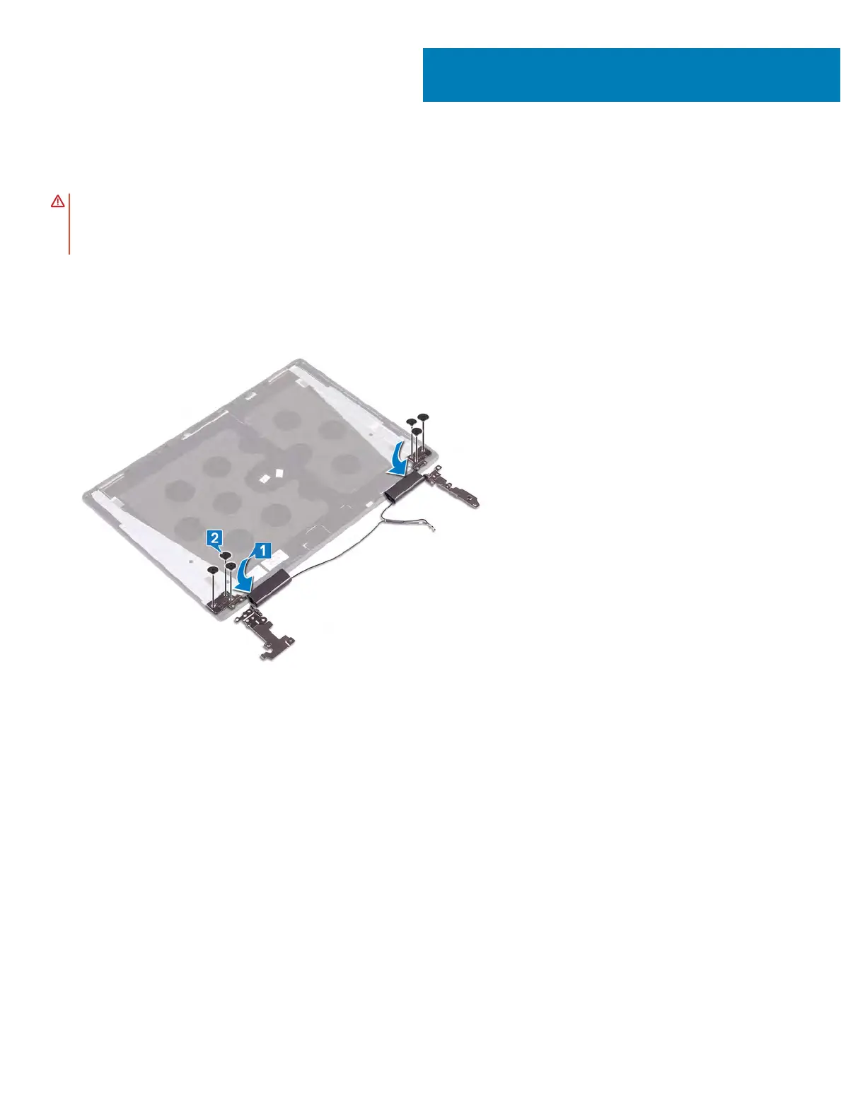 1 Align the screw holes on the hinges and brackets with the screw holes on the display back cover.