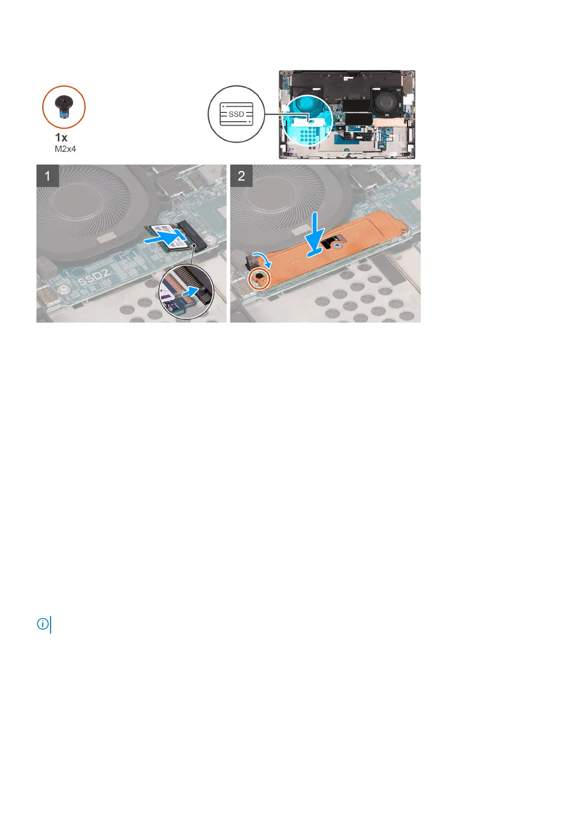 5. Replace the screw (M2x4) that secures the solid-state drive to the palm-rest and keyboard assembly.