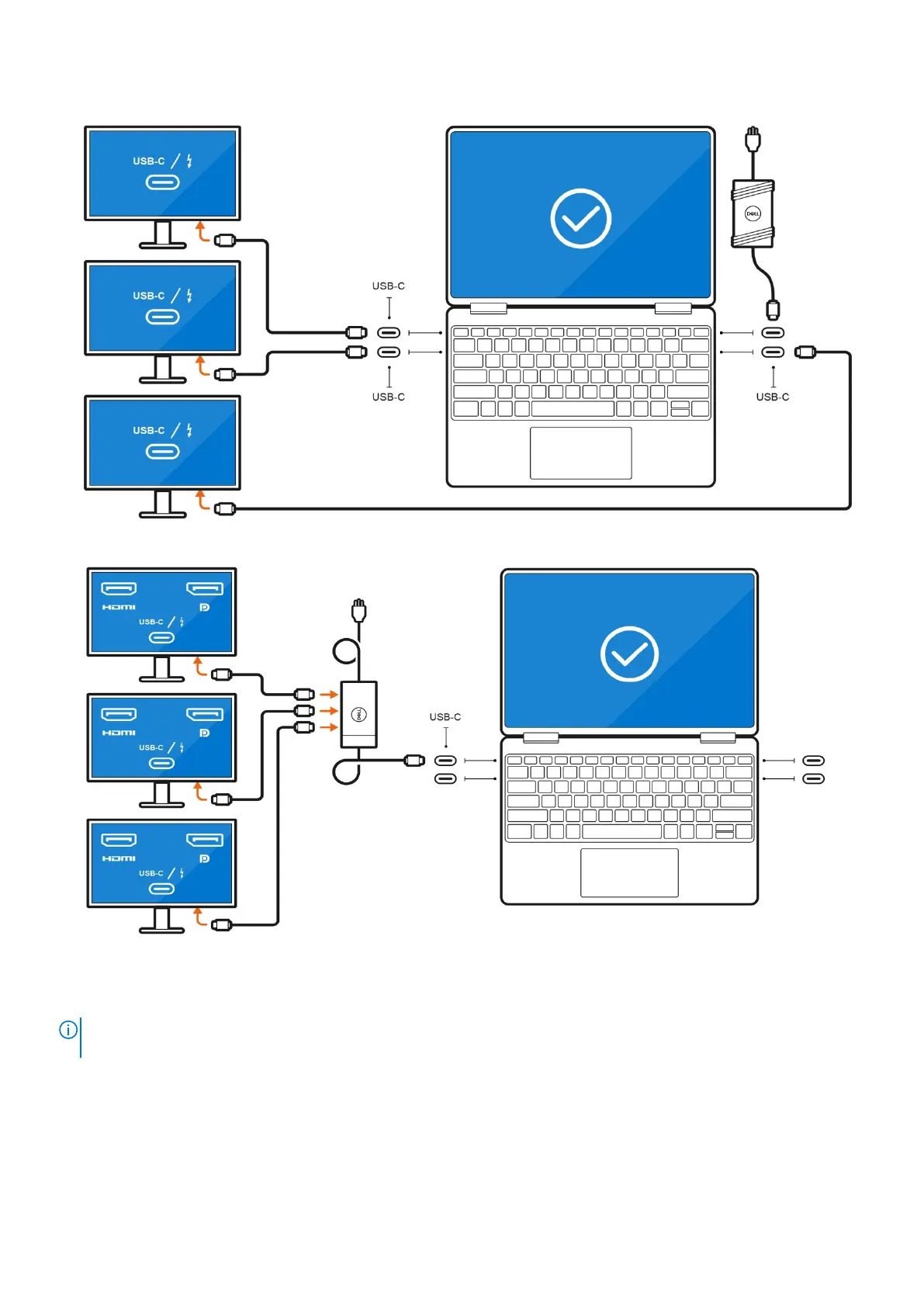 ● Connect up to three external displays using direct USB-C or Thunderbolt cables: