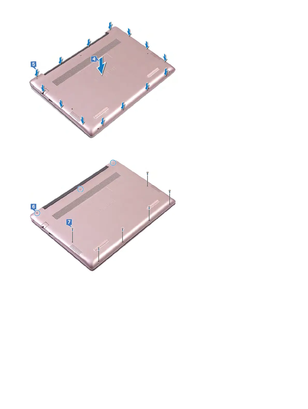 7 Replace the 6 screws (M2x5) that secure the base cover to the palm-rest and keyboard assembly.