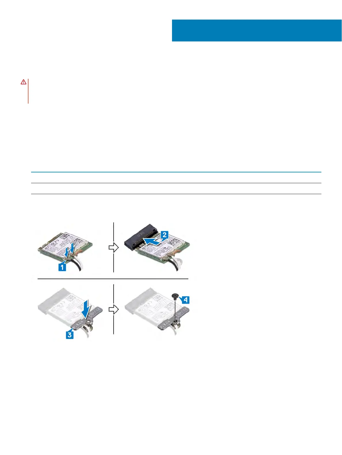 4 Replace the screw (M2x3) that secures the wireless-card bracket to the wireless card and the system board.