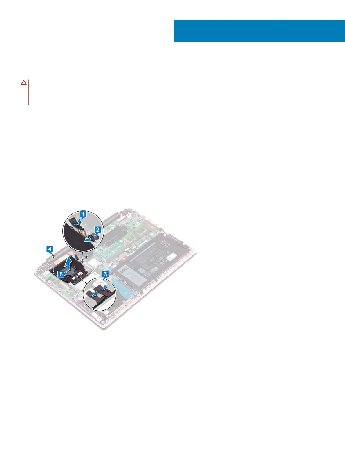 5 Lift the fan o the palm-rest and keyboard assembly.