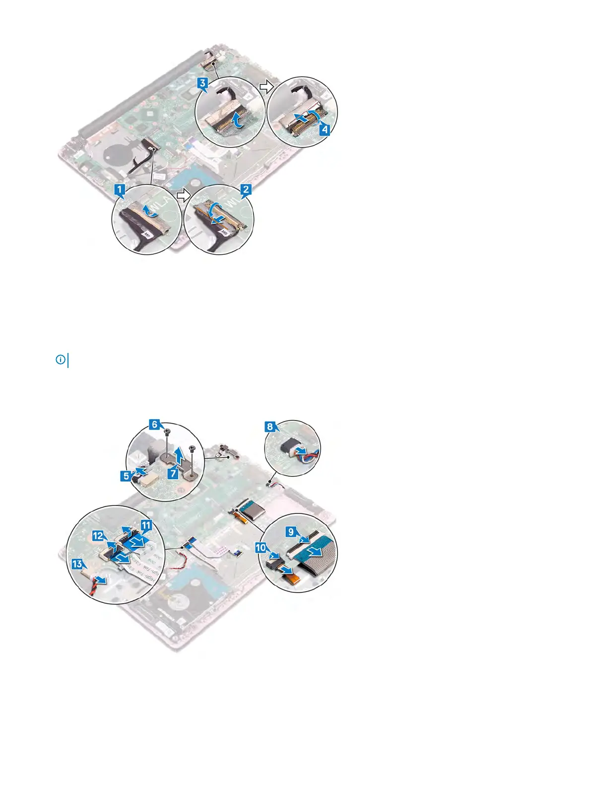 9 Open the latch and disconnect the keyboard cable from the system board.
