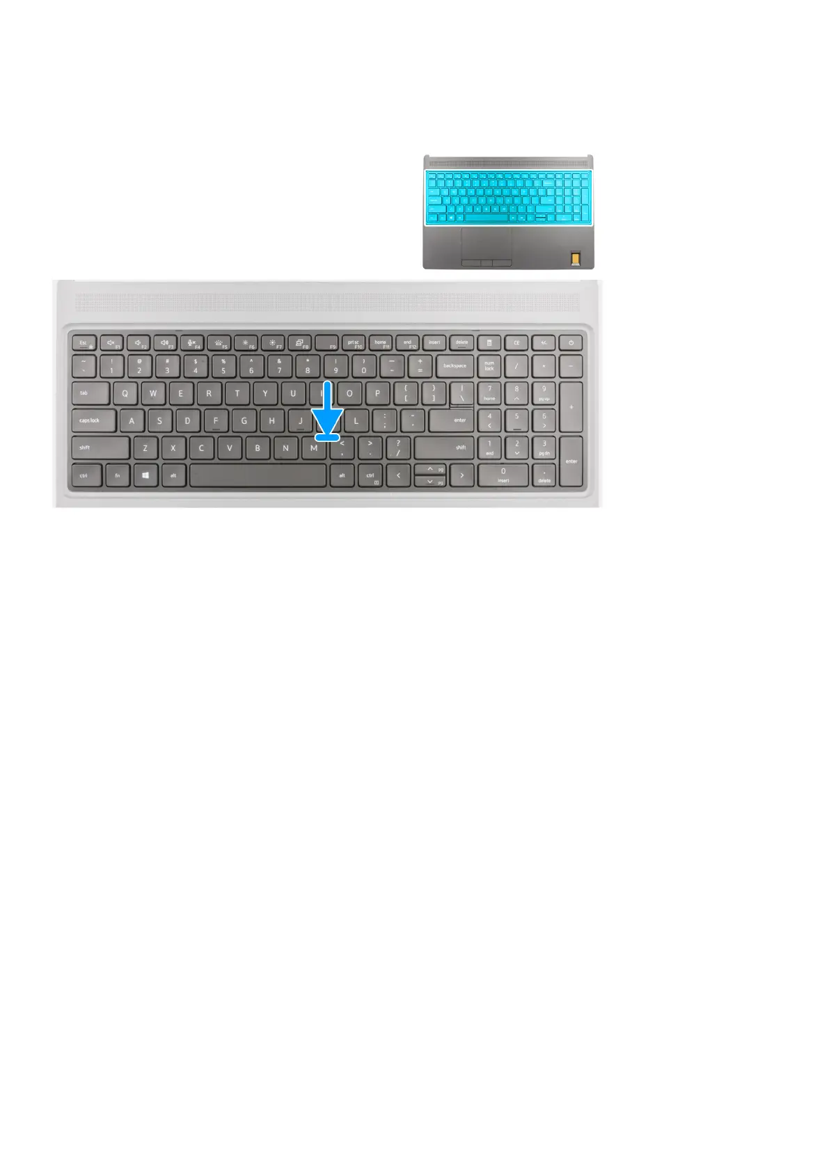 The figure indicates the location of the keyboard and provides a visual representation of the removal procedure.