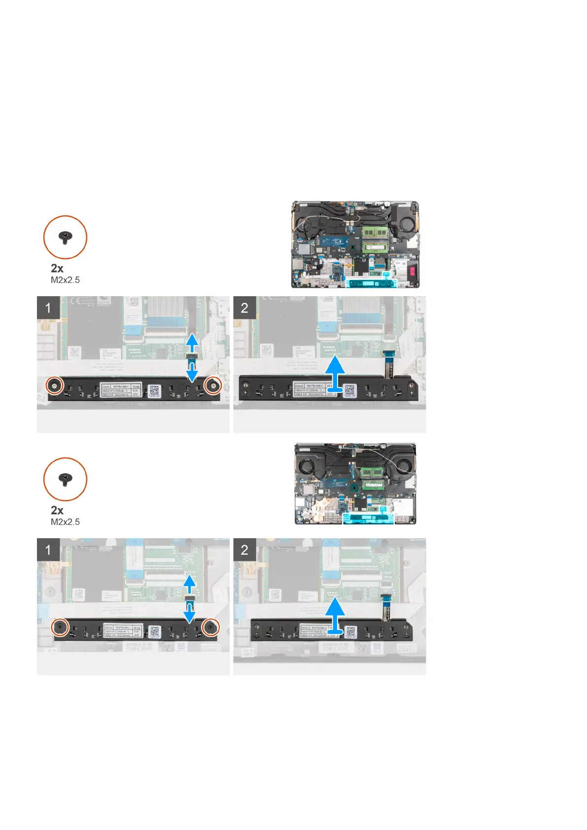 2. Remove the two (M2x2.5) screws that secure the touchpad buttons to the palmrest.
