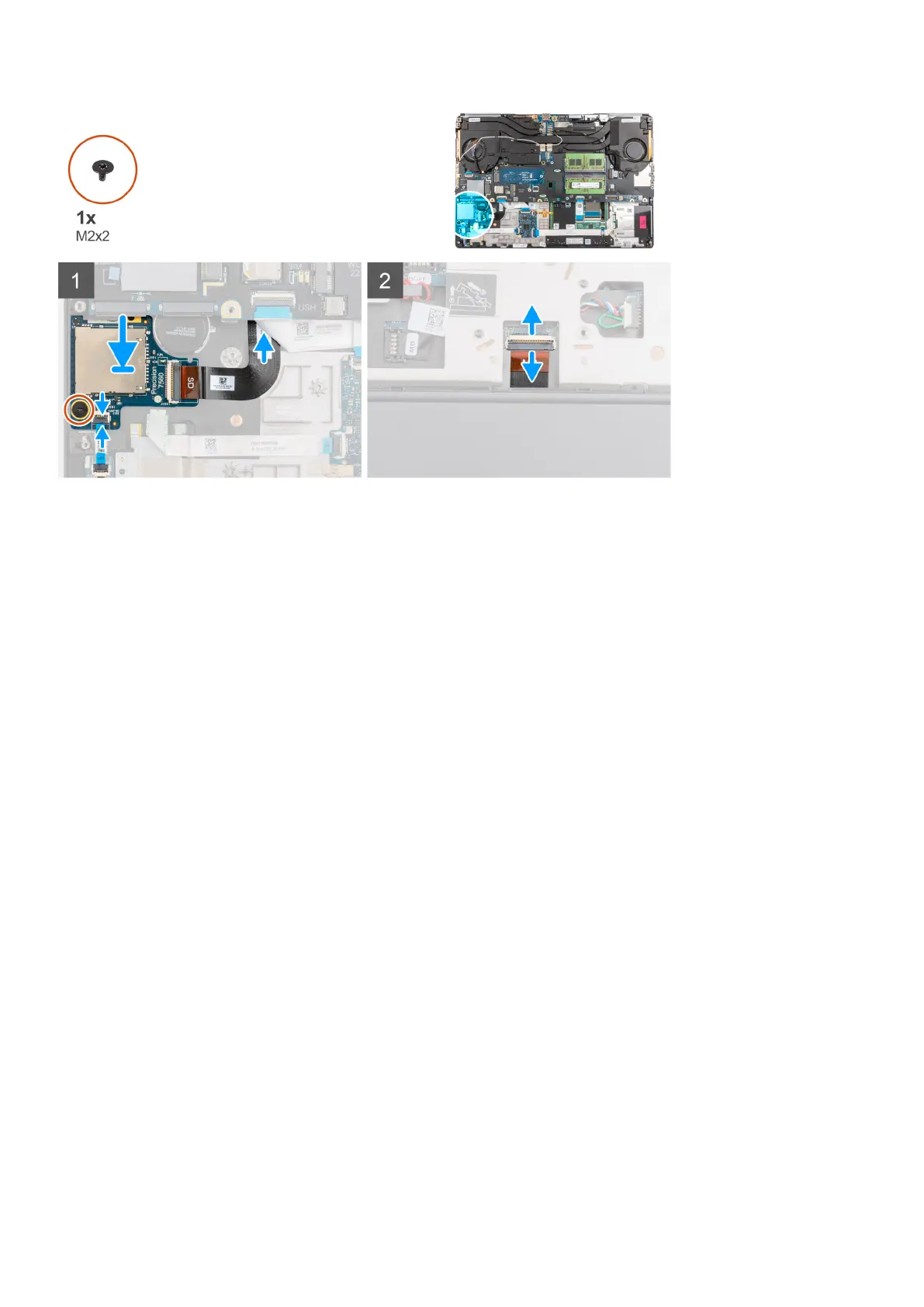3. Replace the (M2x2) screw to secure the SD card reader to the palmrest.