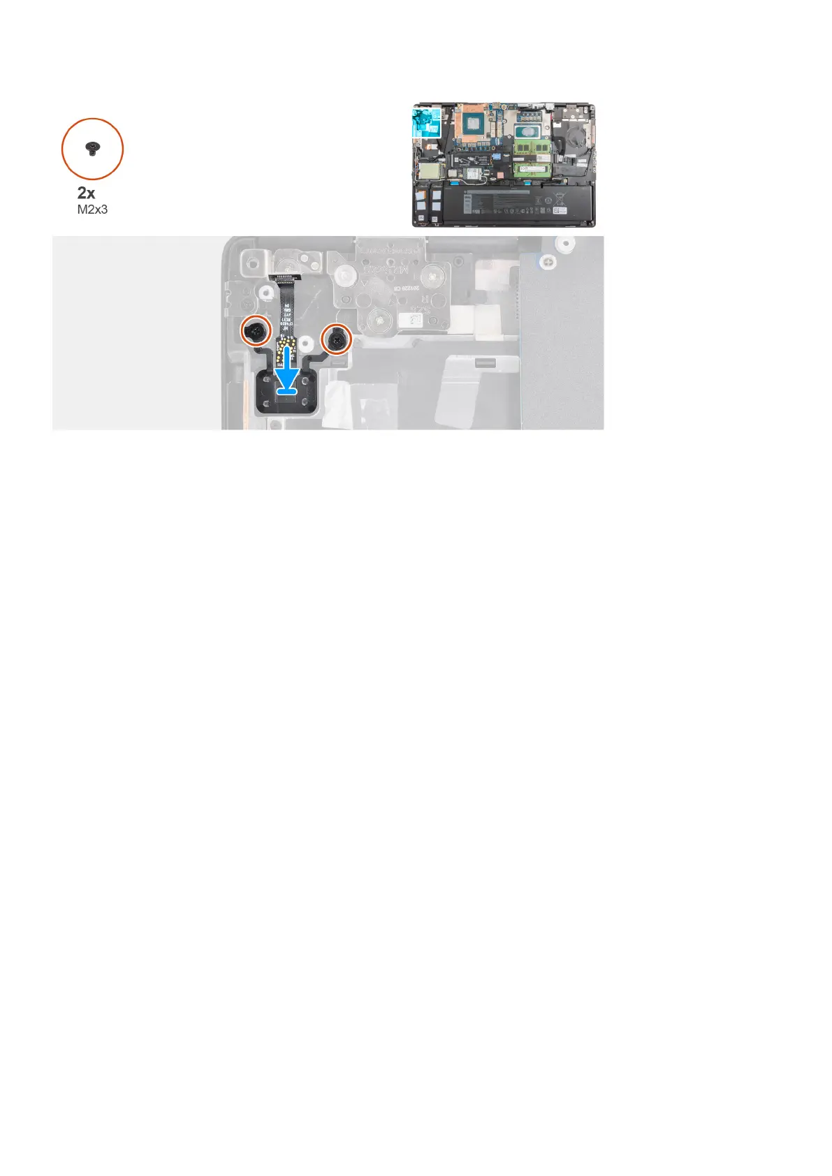 2. Replace the two (M2x3) screws to secure the power button assembly with fingerprint reader in place.