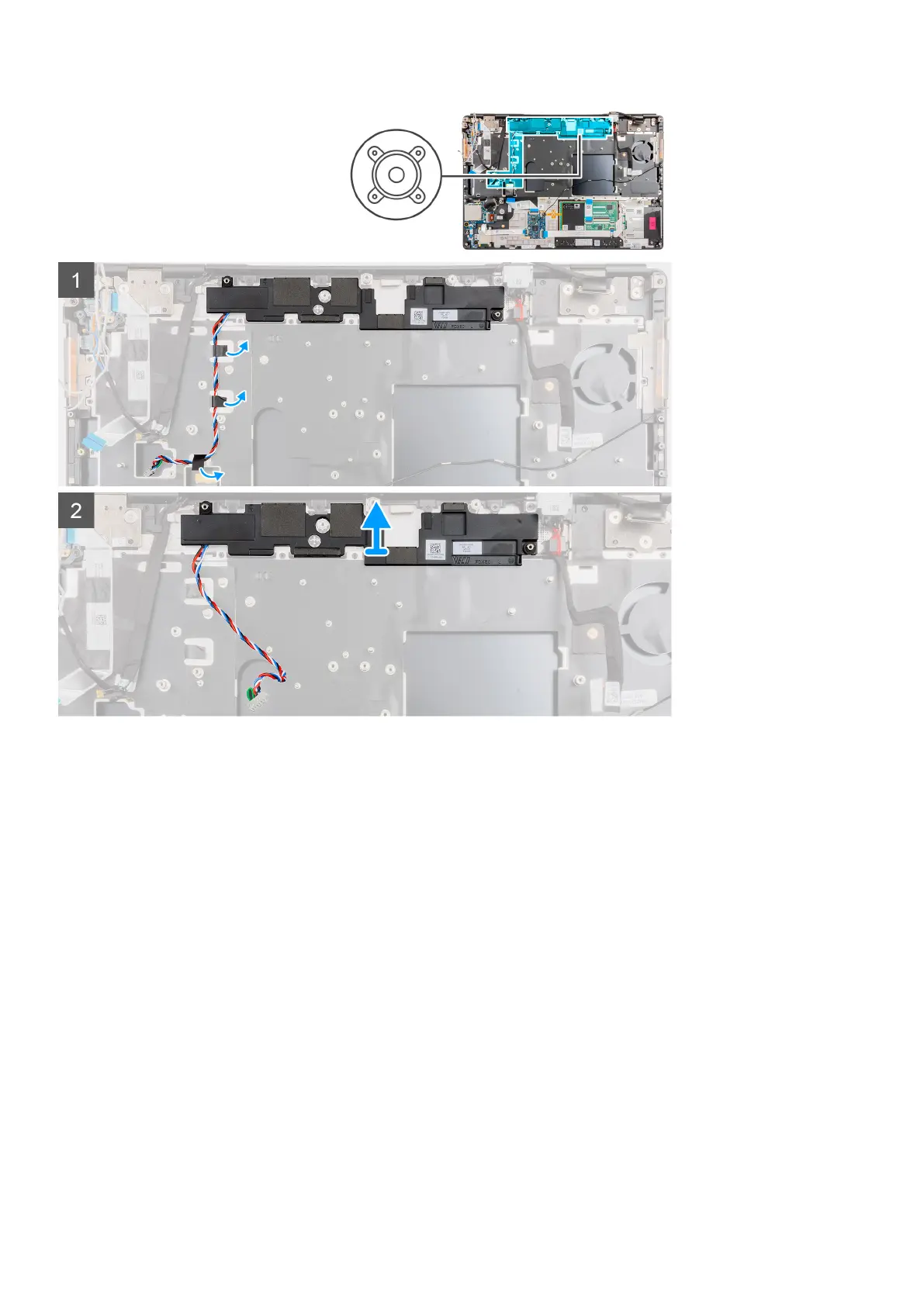 1. Peel the pieces of adhesive tape that secures the speaker cable to the palmrest.