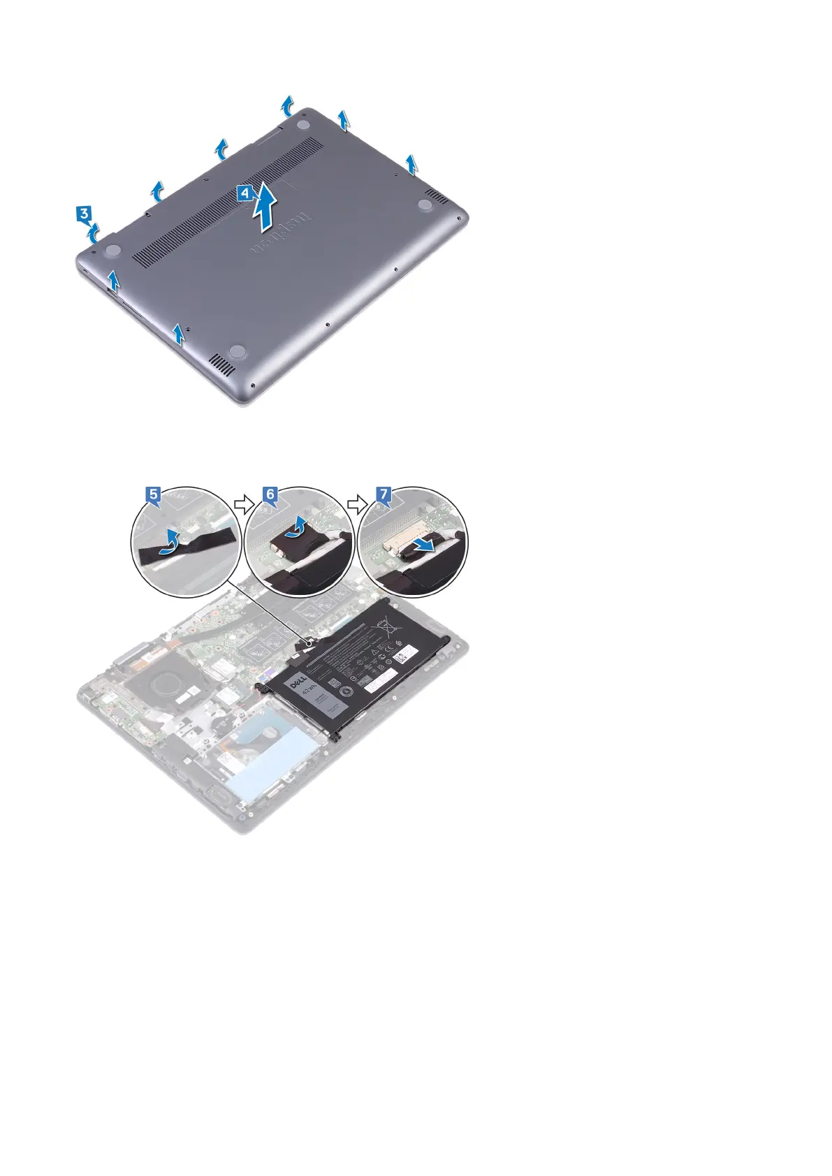 6. Peel the tape that secures the battery cable to the battery-cable connector.