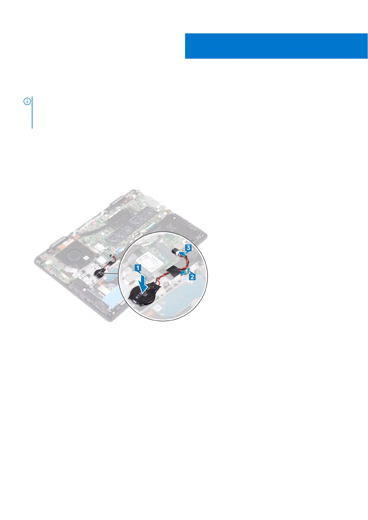 2. Route the coin-cell battery cable through the routing guides on the palm-rest and keyboard assembly.