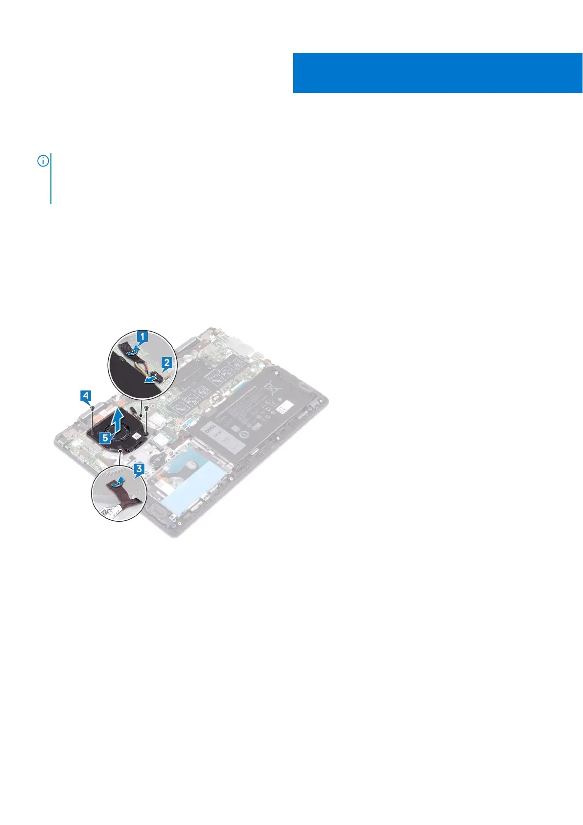 4. Remove the two screws (M2x3) that secure the fan to the palm-rest and keyboard assembly.