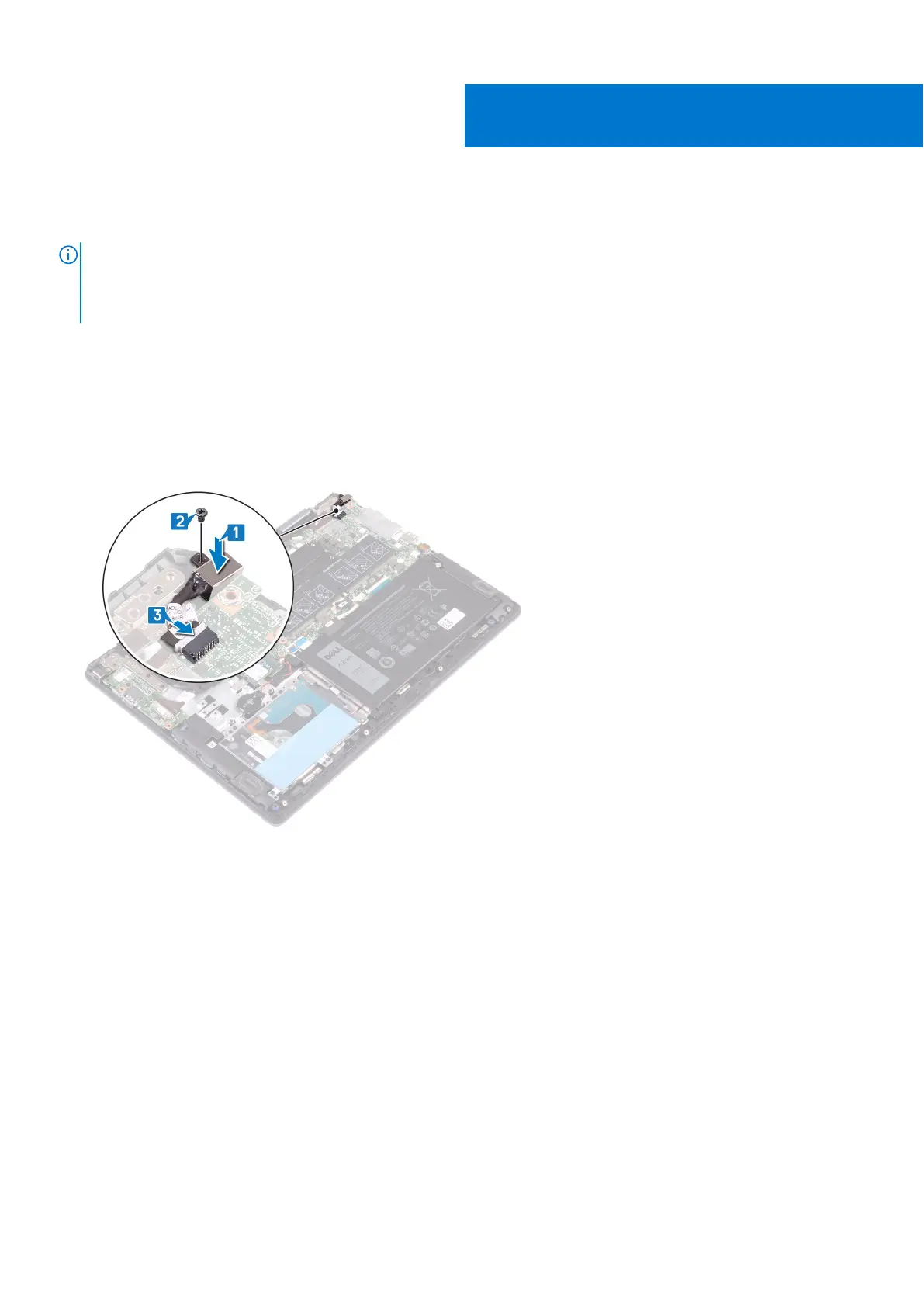 2. Replace the screw (M2x3) that secures the power-adapter port to the palm-rest and keyboard assembly.