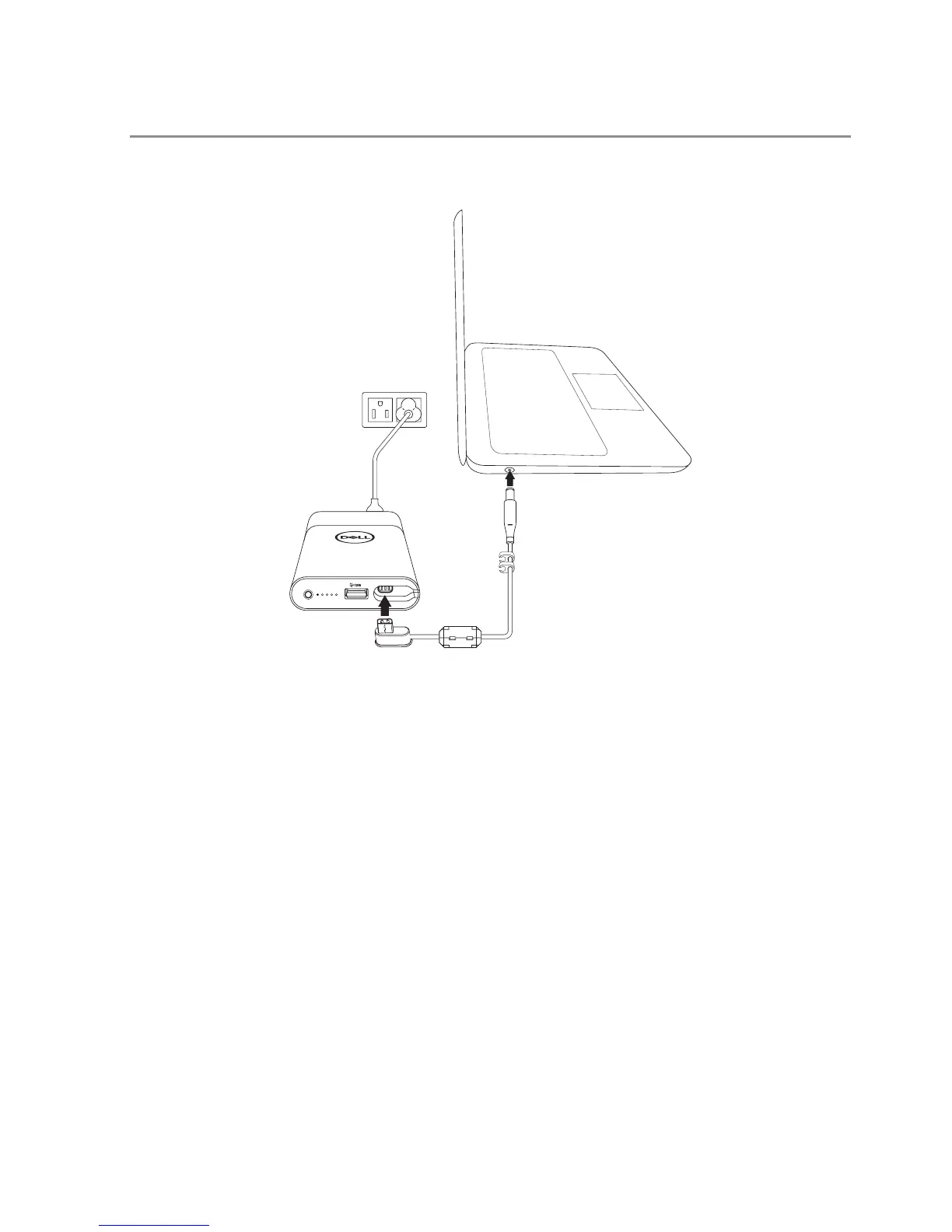 4 Connect the other end of the power-out cable to the power-adapter port on your laptop.