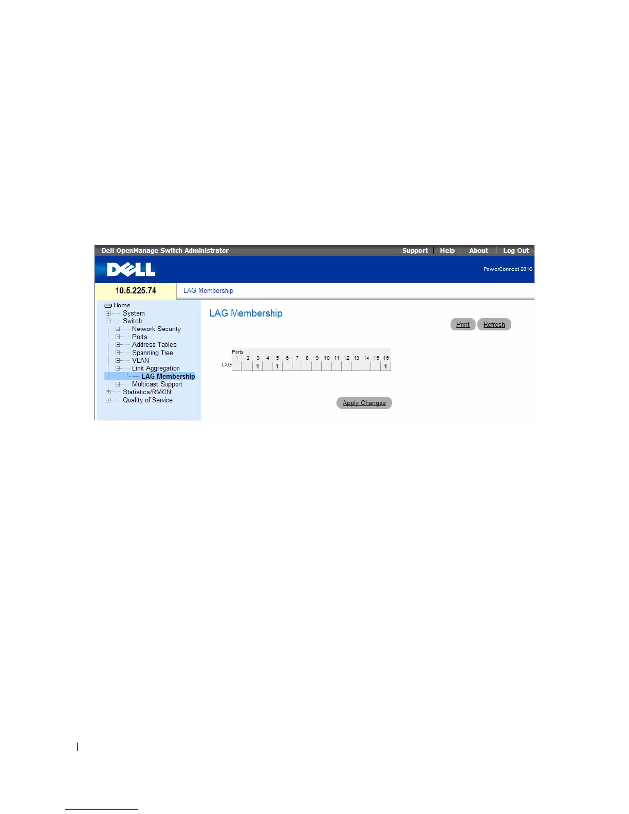 page, click Switch Link Aggregation LAG Membership in the tree view.