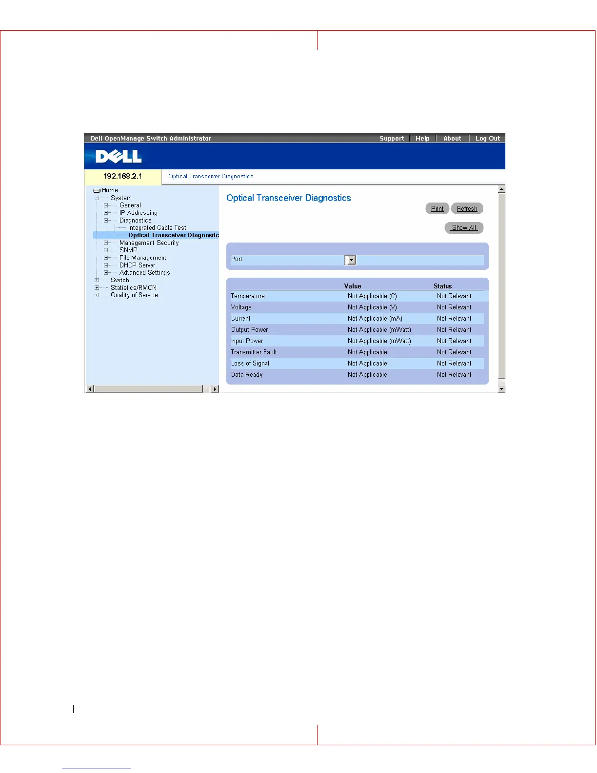The Optical Transceiver Diagnostics Table contains the following columns: