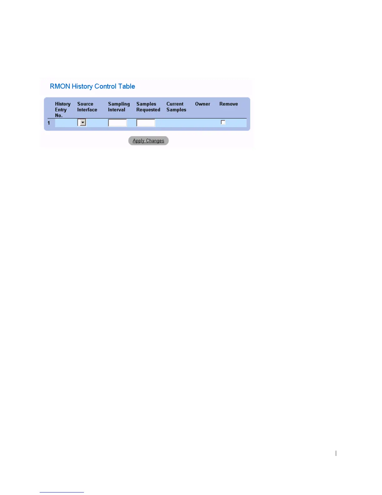 4 Click Apply Changes. The RMON History Control Table entry is deleted, and the
