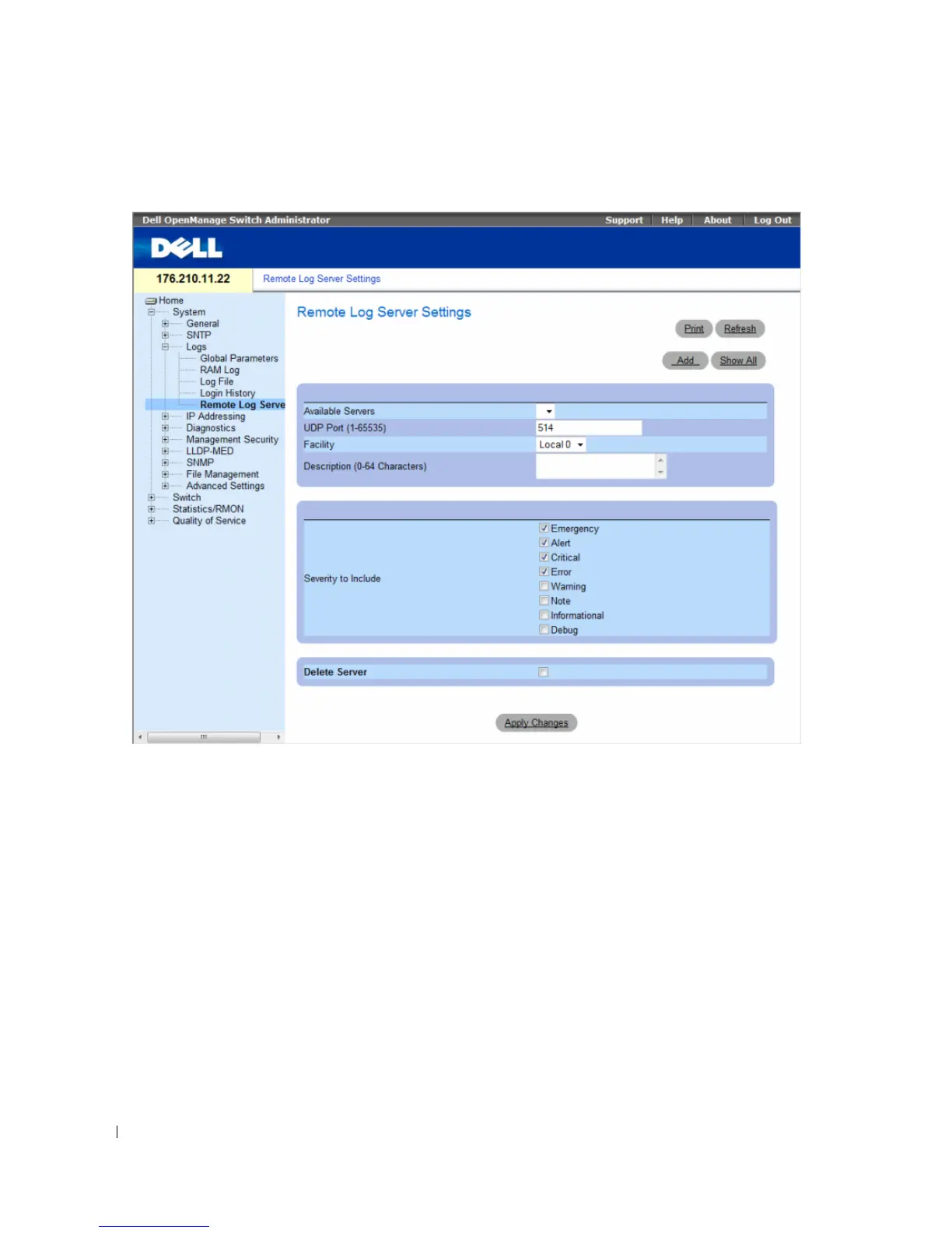 level is overridden. All applications defined for a device utilize the same facility on a server. The field