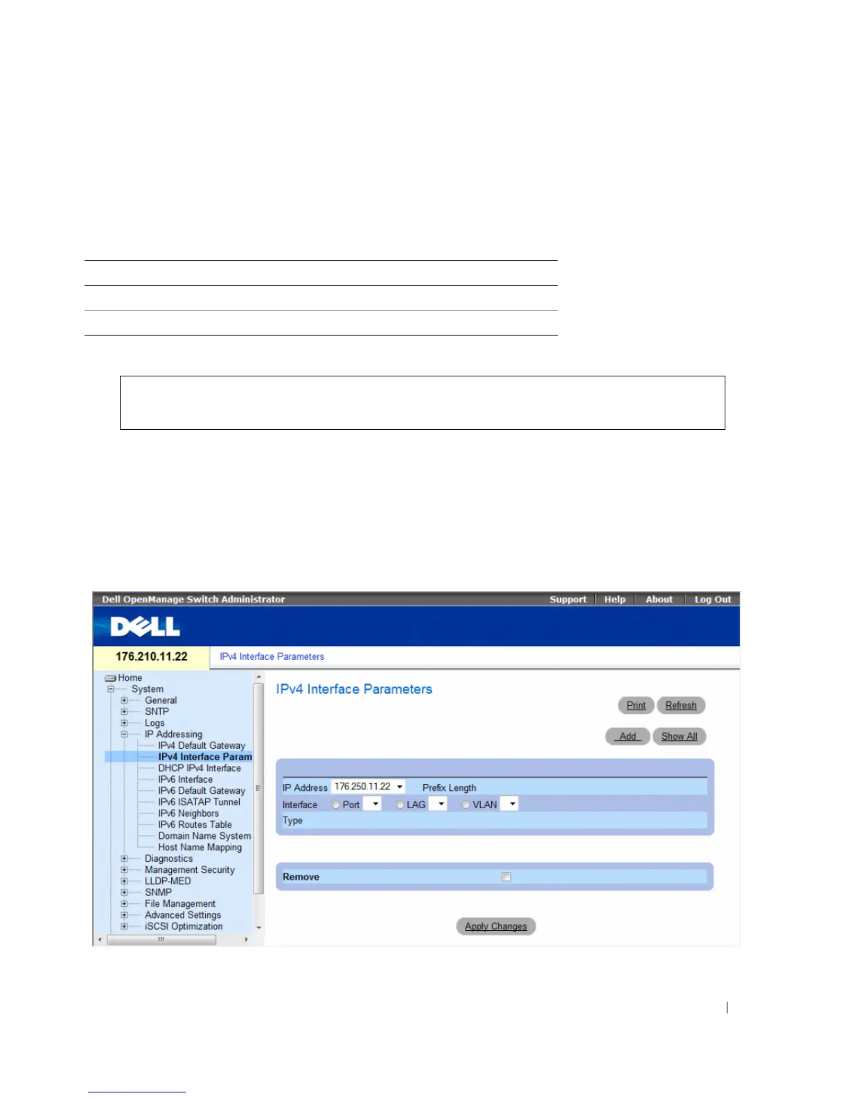 The IPv4 Interface Parameters page contains fields for assigning IP parameter to interfaces.