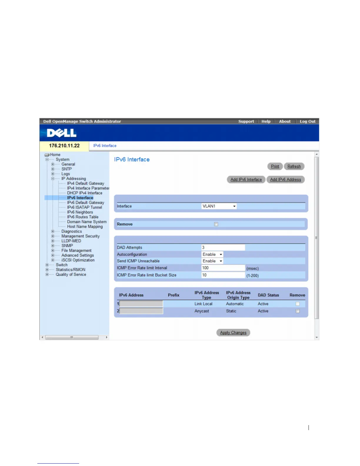 → IP Addressing→ IPv6 Interface in the tree view.