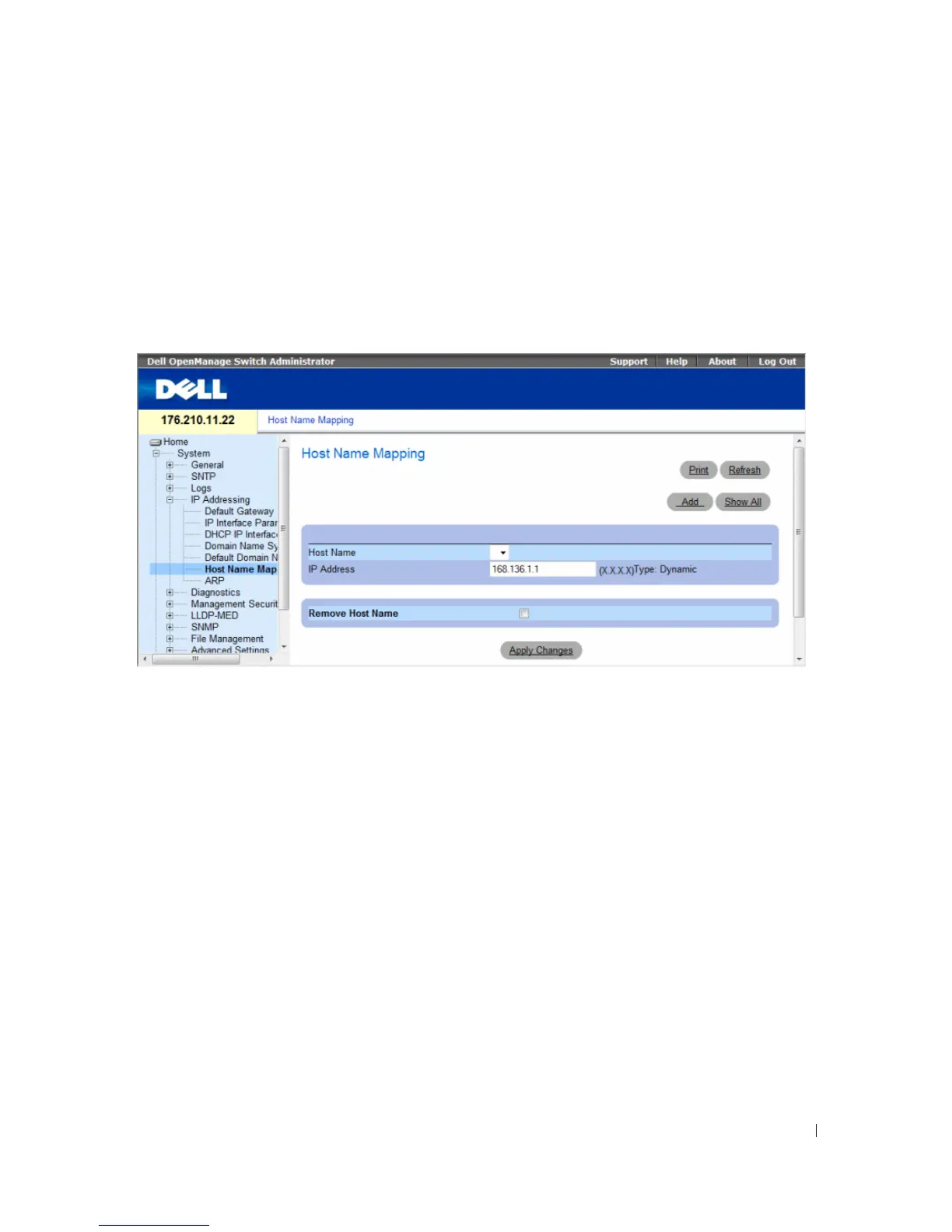 To open the Host Name Mapping page, click System → IP Addressing → Host Name Mapping in the