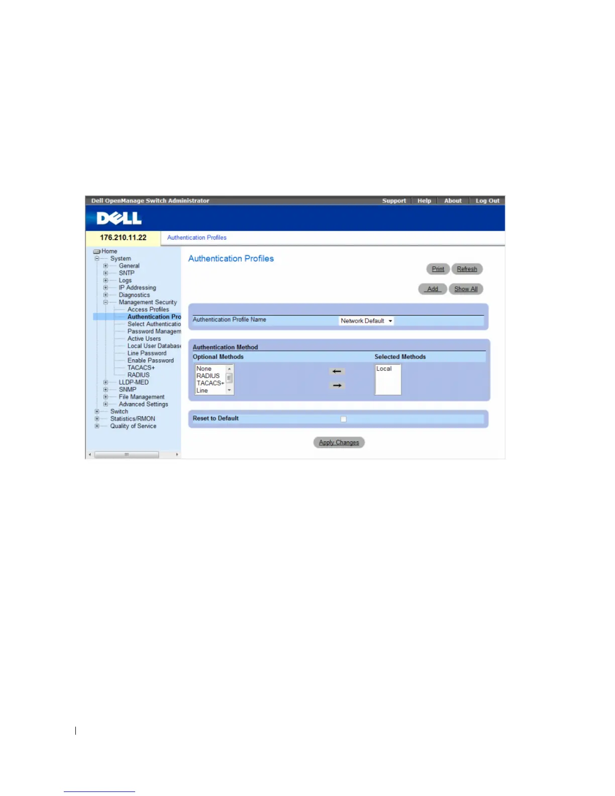 To open the Authentication Profiles page, click System → Management Security → Authentication