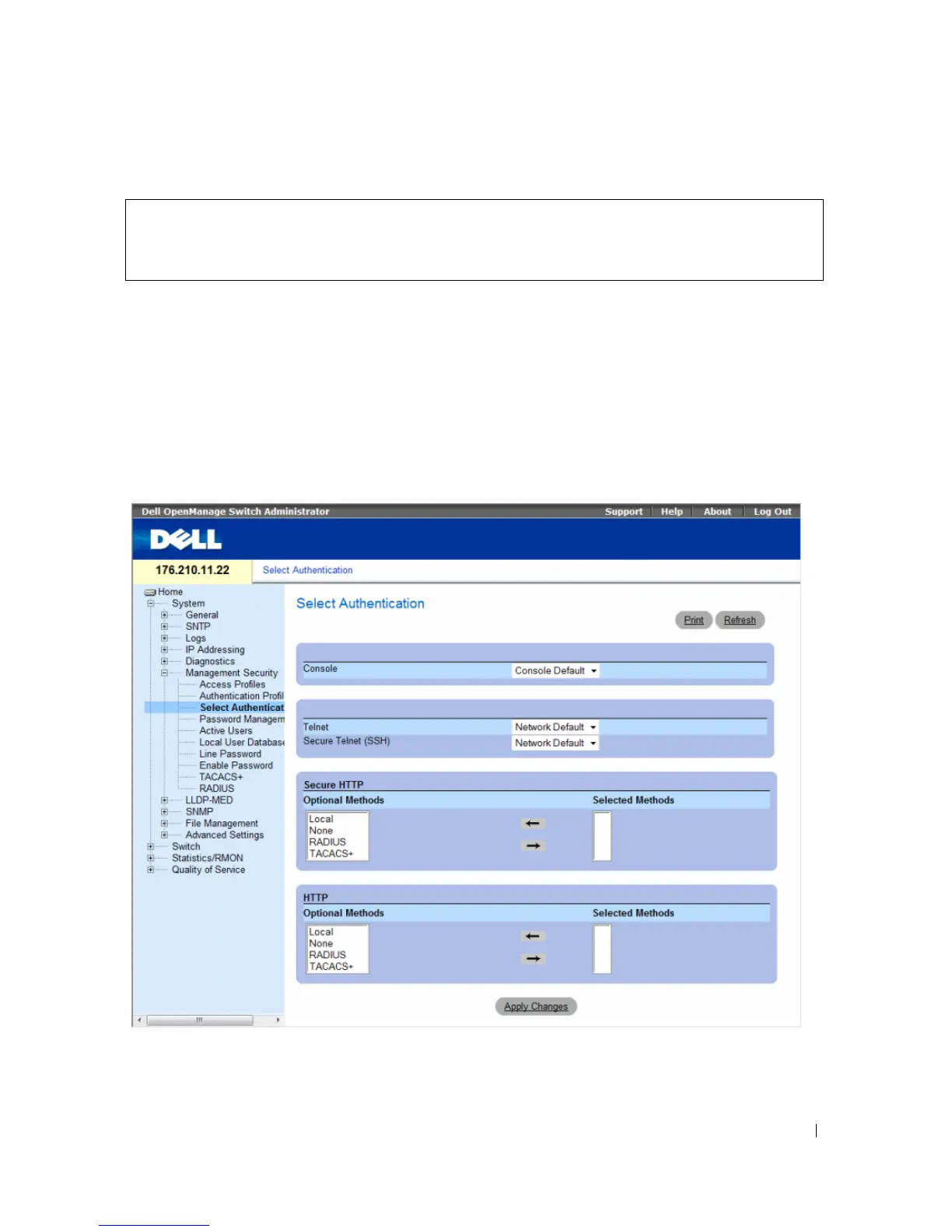 To open the Select Authentication page, click System → Management Security → Select Authentication