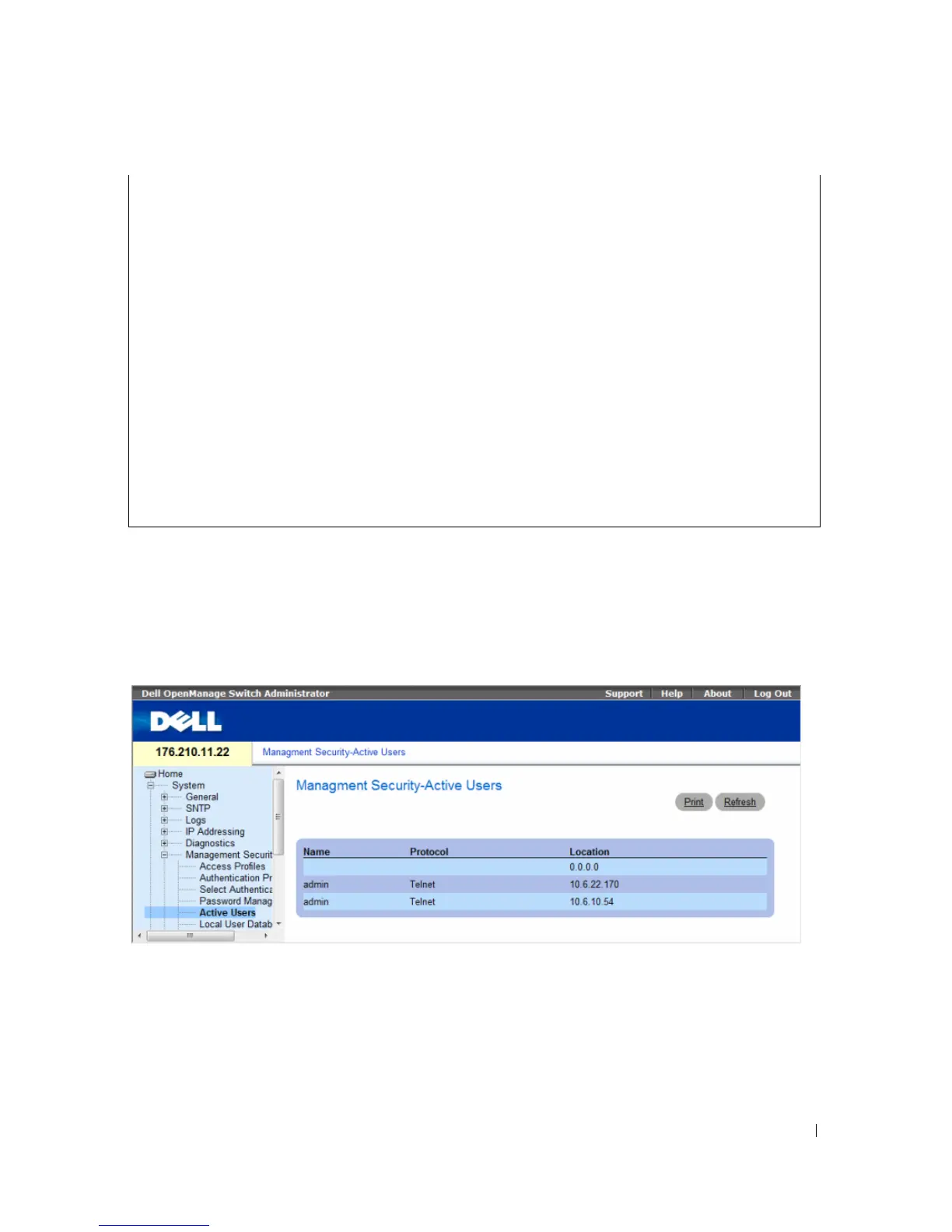 To open the Active Users page, click System → Management Security → Active Users in the tree view.