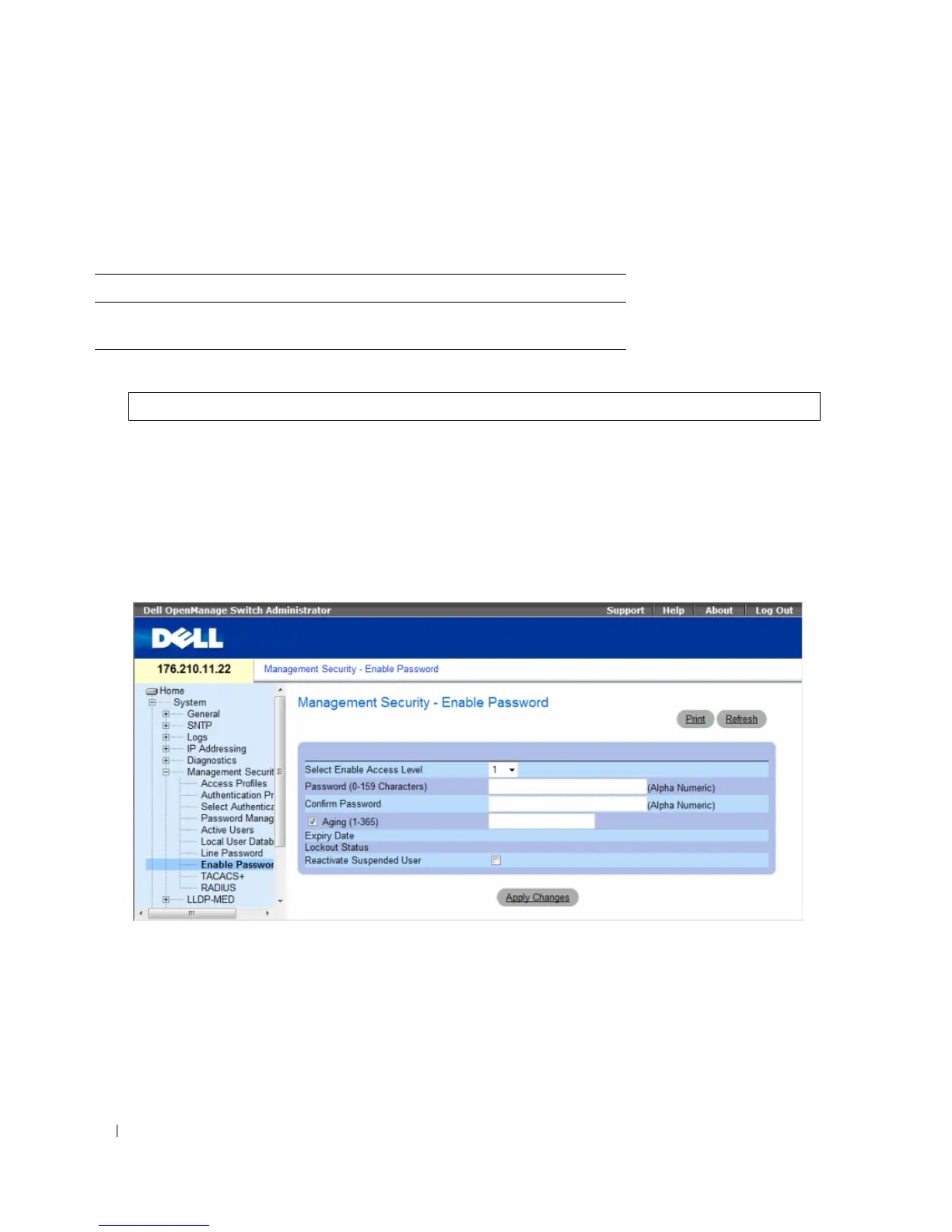 To open the Enable Password page, click System → Management Security → Enable Passwords in the