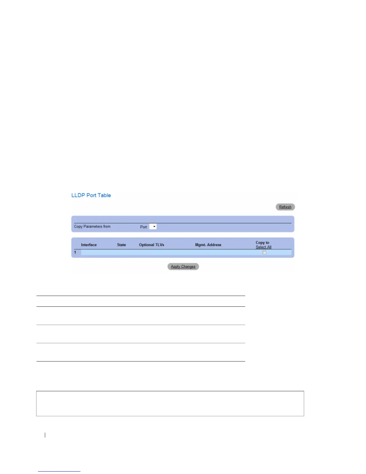 The LLDP Port Table page displays the LLDP Port Configuration. To open the LLDP Port Table,