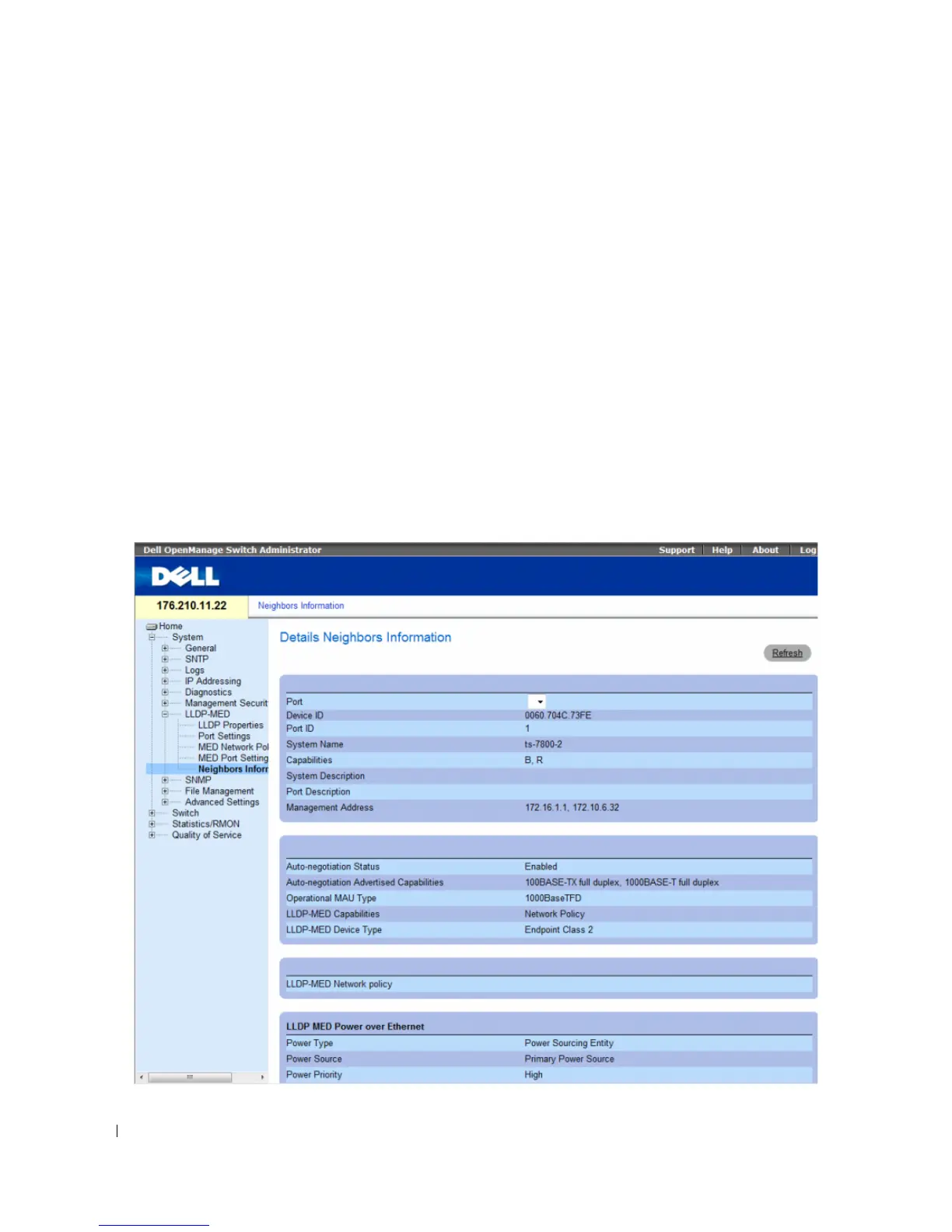 Viewing the Details of the LLDP MED Information Advertised by a Neighbor Device