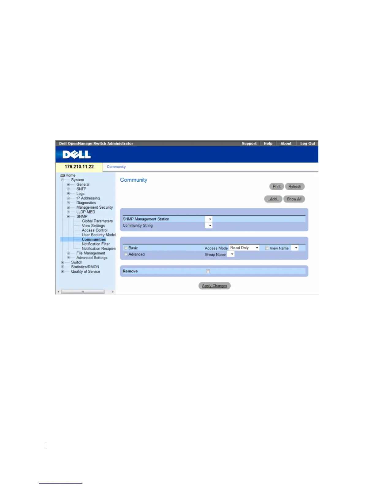 To open the SNMP Community page, click System → SNMP → Communities in the tree view.