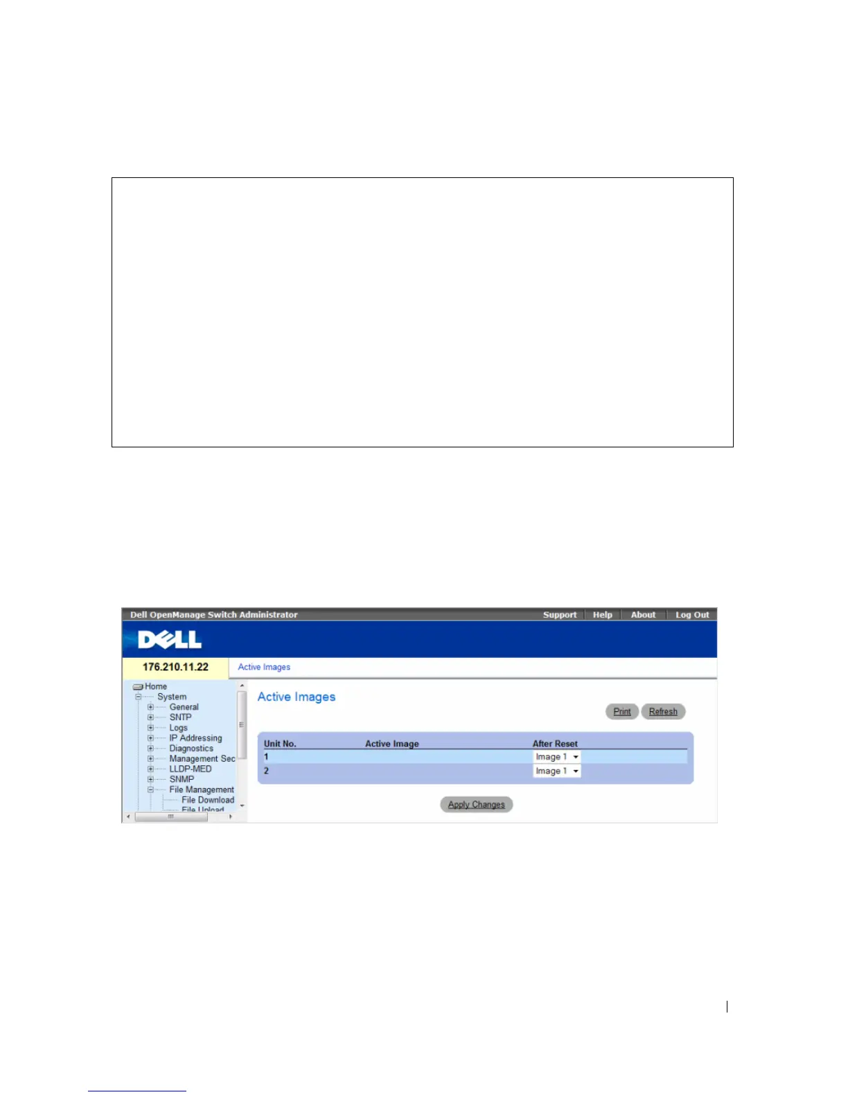 The Active Images page allows network managers to select and reset the Image files. The Active Image