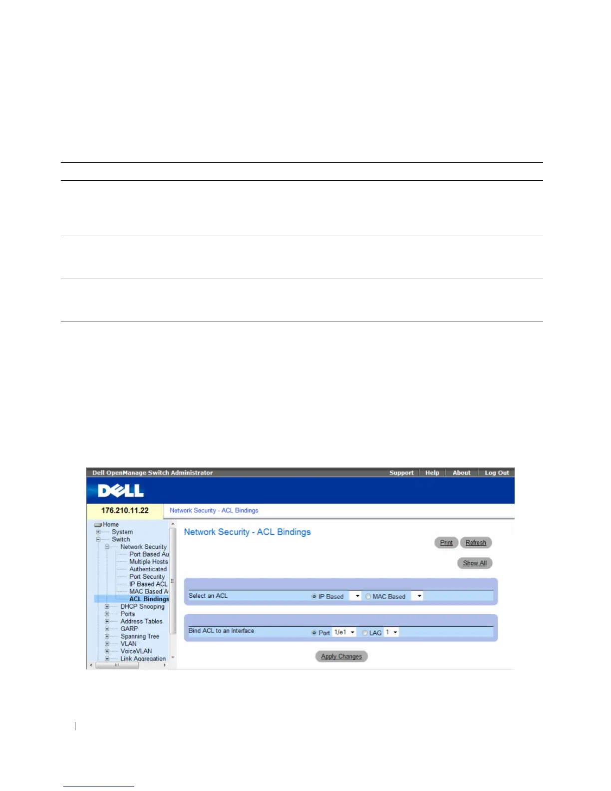 selected interface.Whenever an ACL is assigned on a port, LAG or, VLAN, flows from that ingress