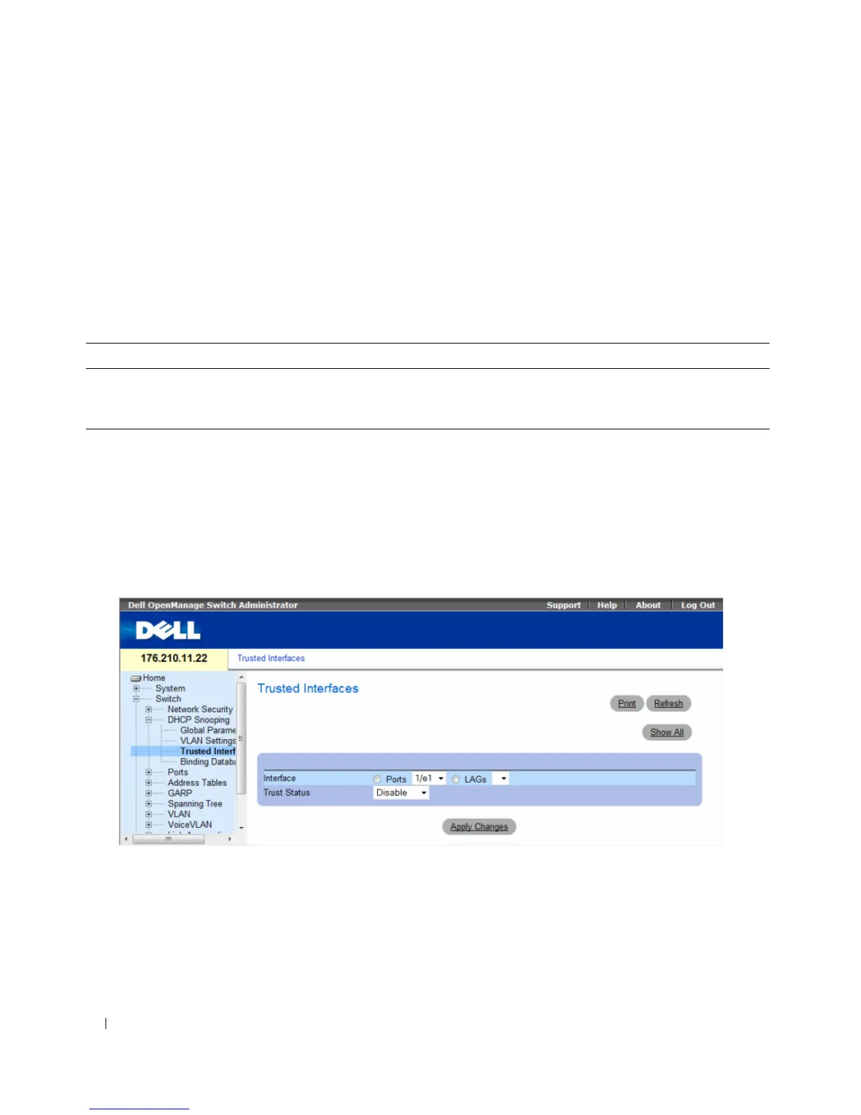To define Trusted interfaces, click Switch→ DHCP Snooping → Trusted Interface