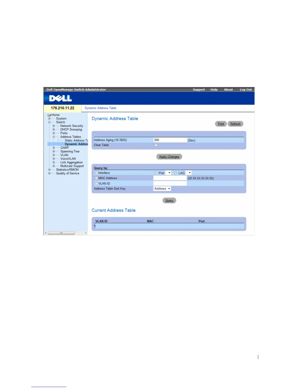 To open the Dynamic Address Table page, click Switch → Address Tables → Dynamic MAC Address in