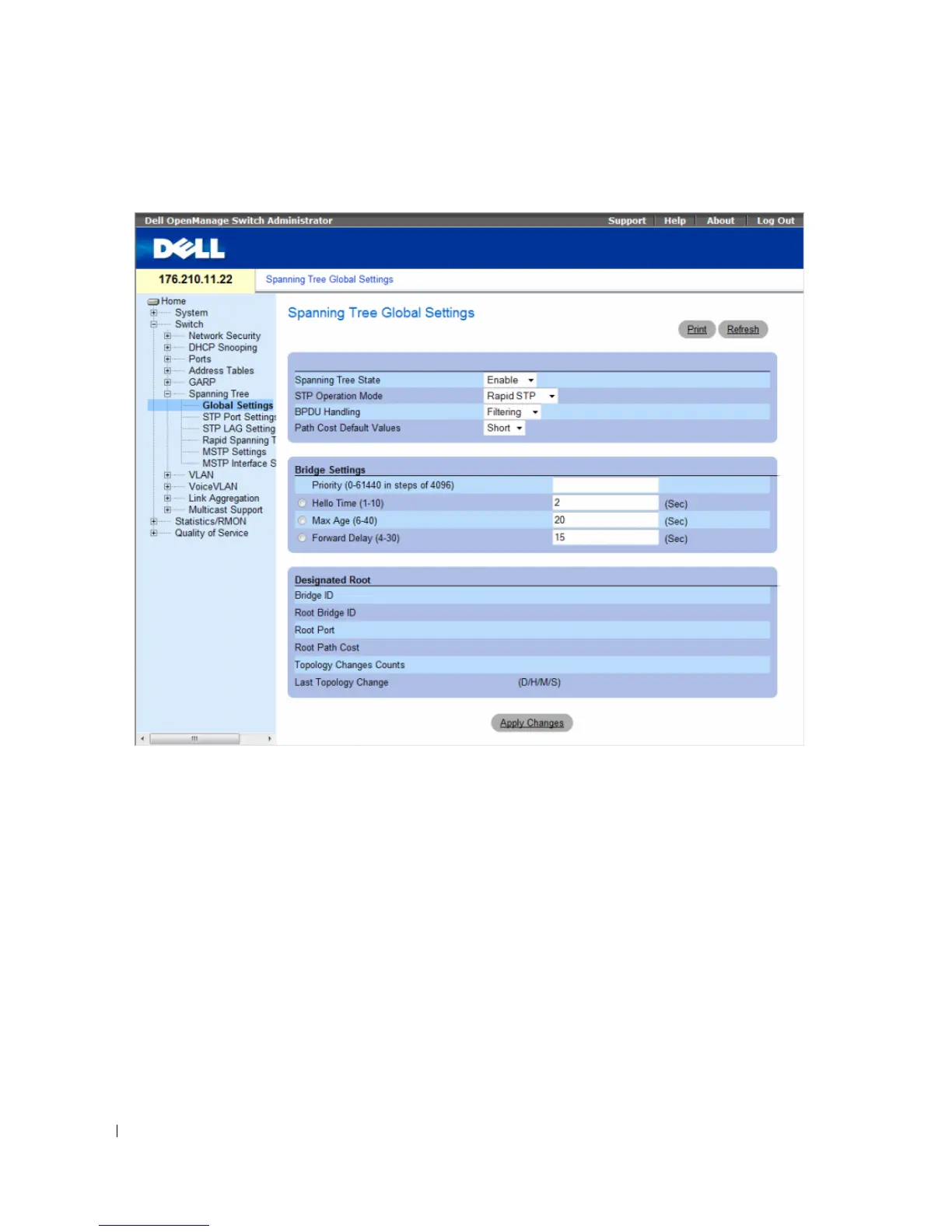 — Enables or disables Spanning Tree on the device. The possible field values are: