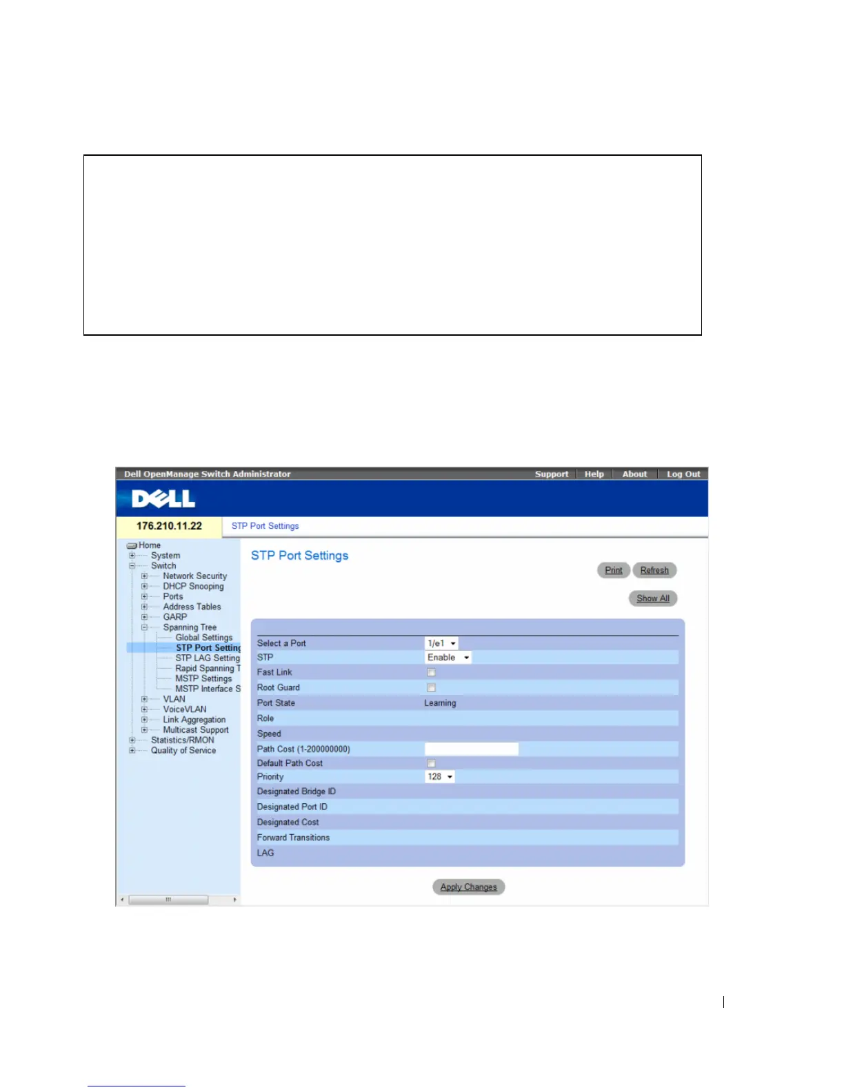 To open the STP Port Settings page, click Switch → Spanning Tree → Port Settings in the tree view.
