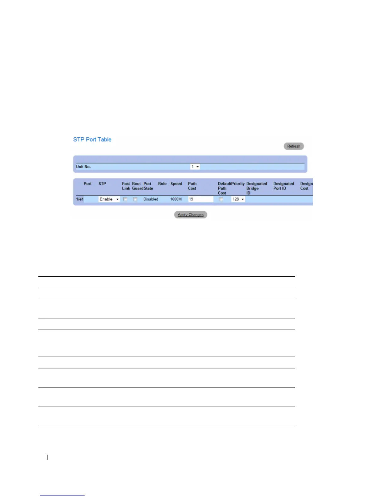 The following table summarizes the equivalent CLI commands for defining STP port parameters as
