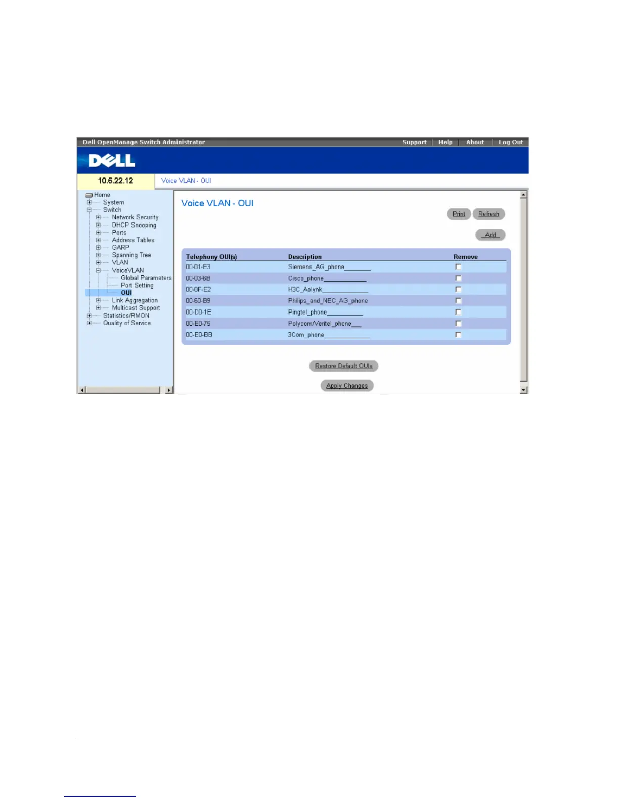 — Lists the OUIs currently enabled on the Voice VLAN. The following OUIs are