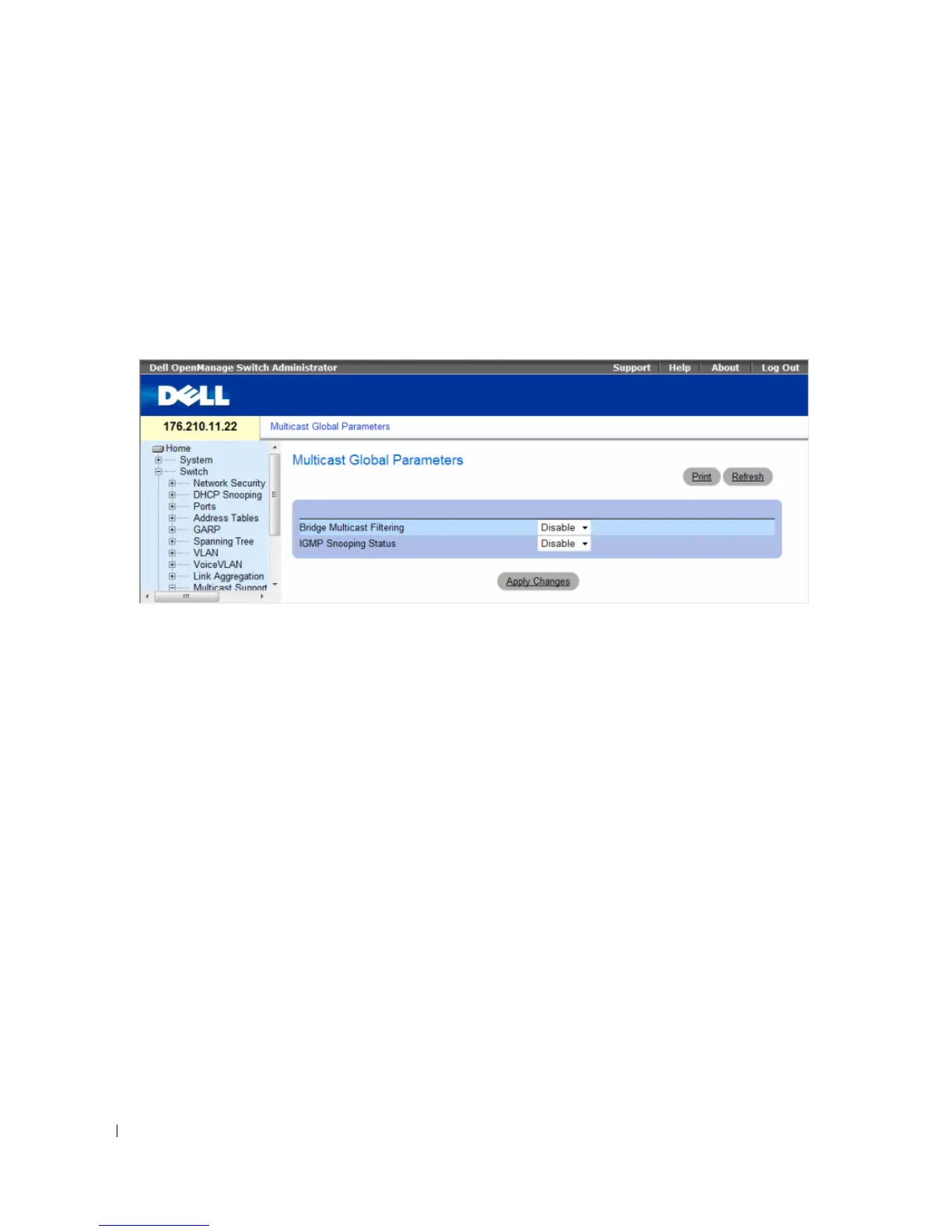 To open the Global Parameters page, click Switch → Multicast Support → Global Parameters in the tree