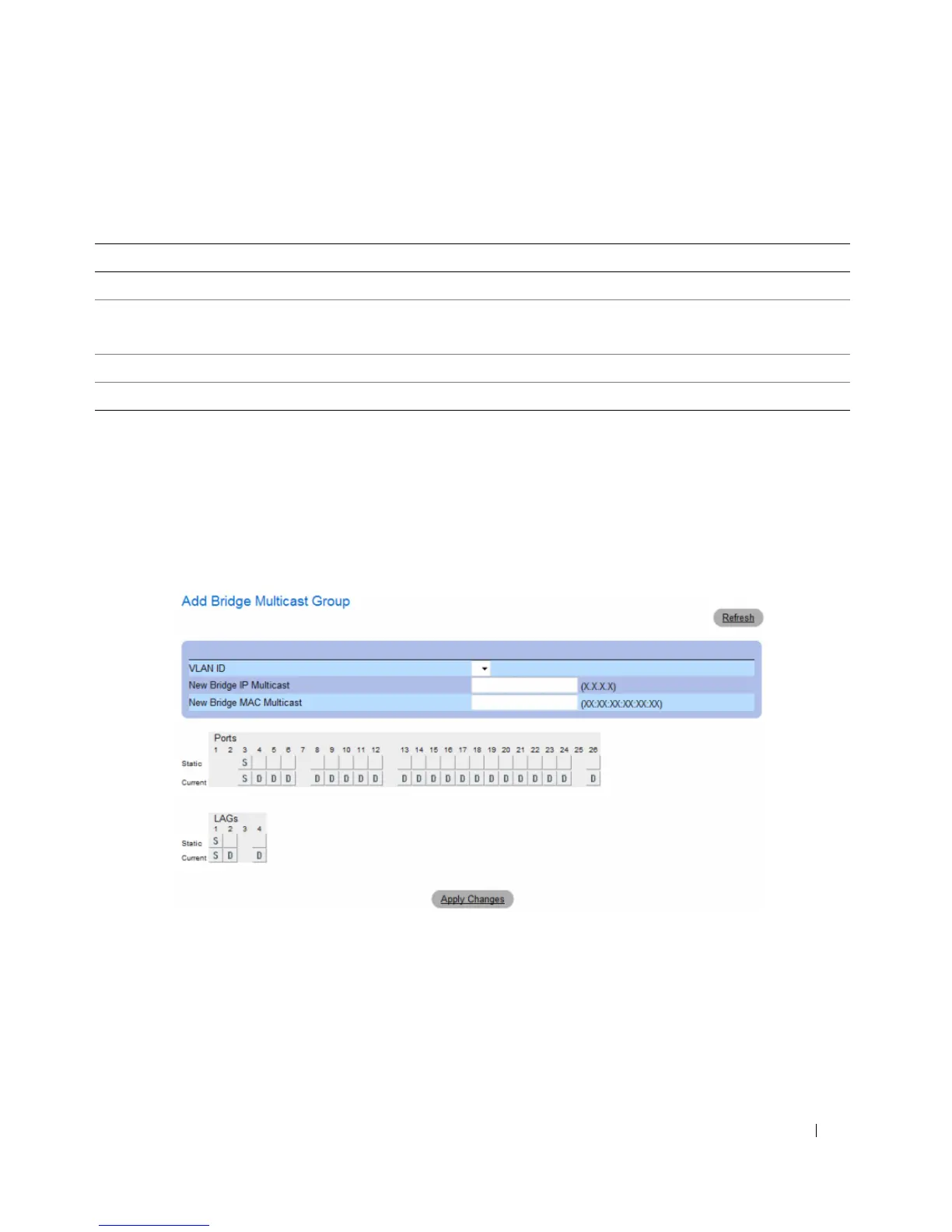 S Attaches the port to the Multicast group as static member in the Static Row.
