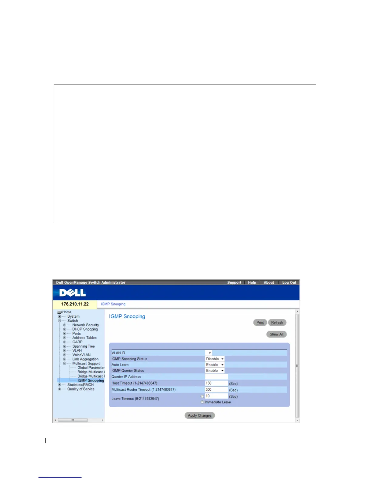 page, click Switch→ Multicast Support→ IGMP Snooping in the tree view.
