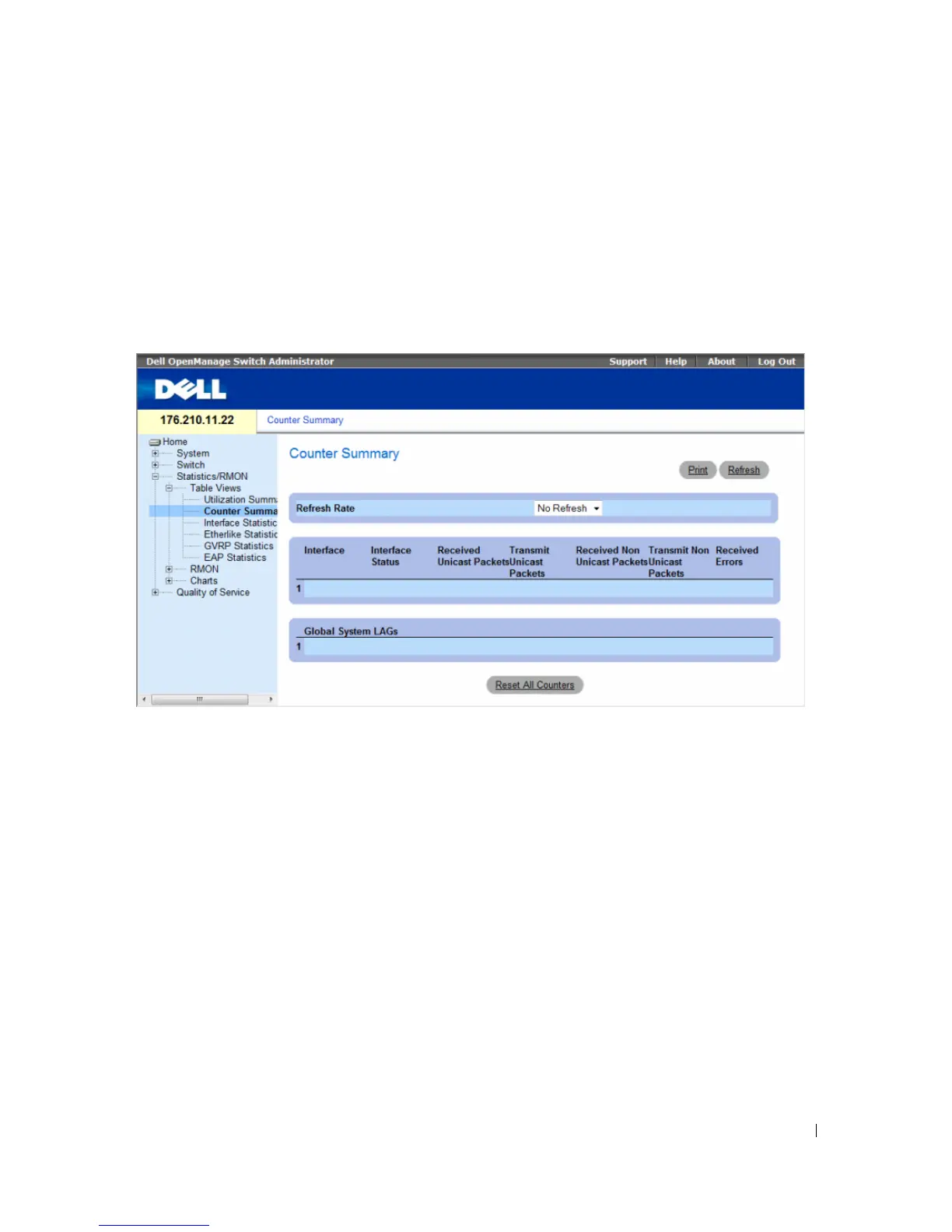 To open the Counter Summary page, click Statistics/RMON → Tab le View s → Counter Summary in the