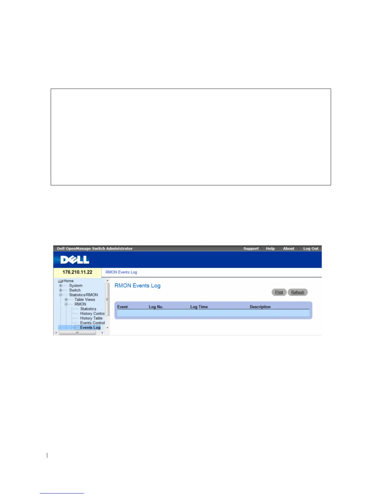 click Statistics/RMON→ RMON→ Events Log in the tree view.